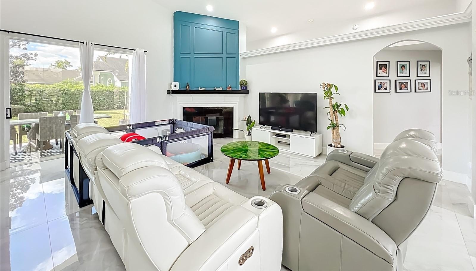 The home offers 4 bedrooms plus a theater/media room with projector and recliner seating, which can easily serve as a 5th bedroom. Recent updates include new interior and exterior paint, along with new fixtures throughout. Enjoy a large covered patio and a spacious yard.