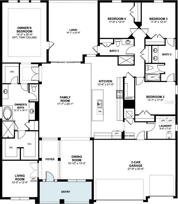 The large owner's suite is a retreat of its own, featuring an impressive en-suite bathroom with a separate soaking tub and shower, separate sink vanities, and a private water closet. There are also 2 huge walk-in closets and a separate linen closet. The secondary rooms are located on the opposite side of the home, 2 of which share a Jack-and-Jill bathroom.