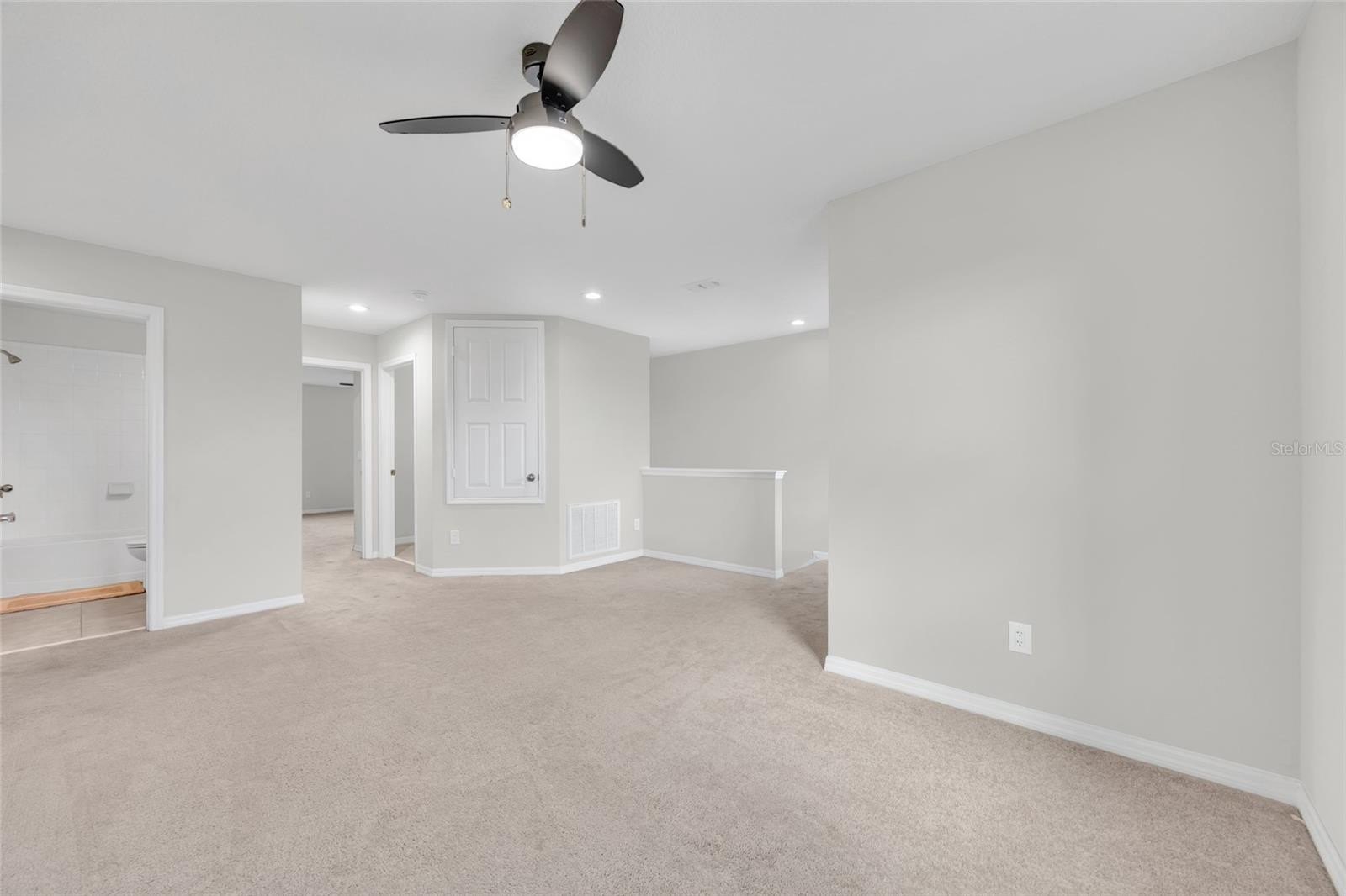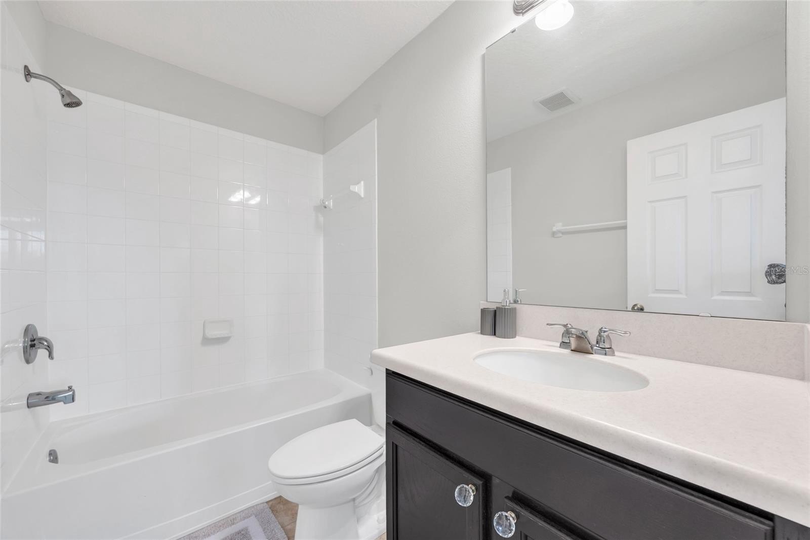 One or more photo(s) has been virtually staged. Located in the Saratoga community of Kissimmee the entry foyer welcomes you with tile flooring, recessed lighting, and crown molding. The main living area features an open-concept layout connecting the family room and kitchen, ideal for everyday living and entertaining. The kitchen is equipped with dark cabinetry, granite countertops, a tile backsplash, stainless steel appliances, an eat-in breakfast bar, and a walk-in pantry. The dining area is conveniently located adjacent to the kitchen. The second floor includes a spacious loft providing flexible living space suitable for a game room, media area, or home office. The primary bedroom features an en-suite bathroom, along with additional secondary bedrooms. The laundry room is also located upstairs and includes an LG front-load washer and dryer, tile flooring, additional cabinetry, and attic access. Exterior features include a covered patio and a private backyard. Conveniently located near shopping, dining, and major attractions, this home offers a desirable combination of comfort, functionality, and location.