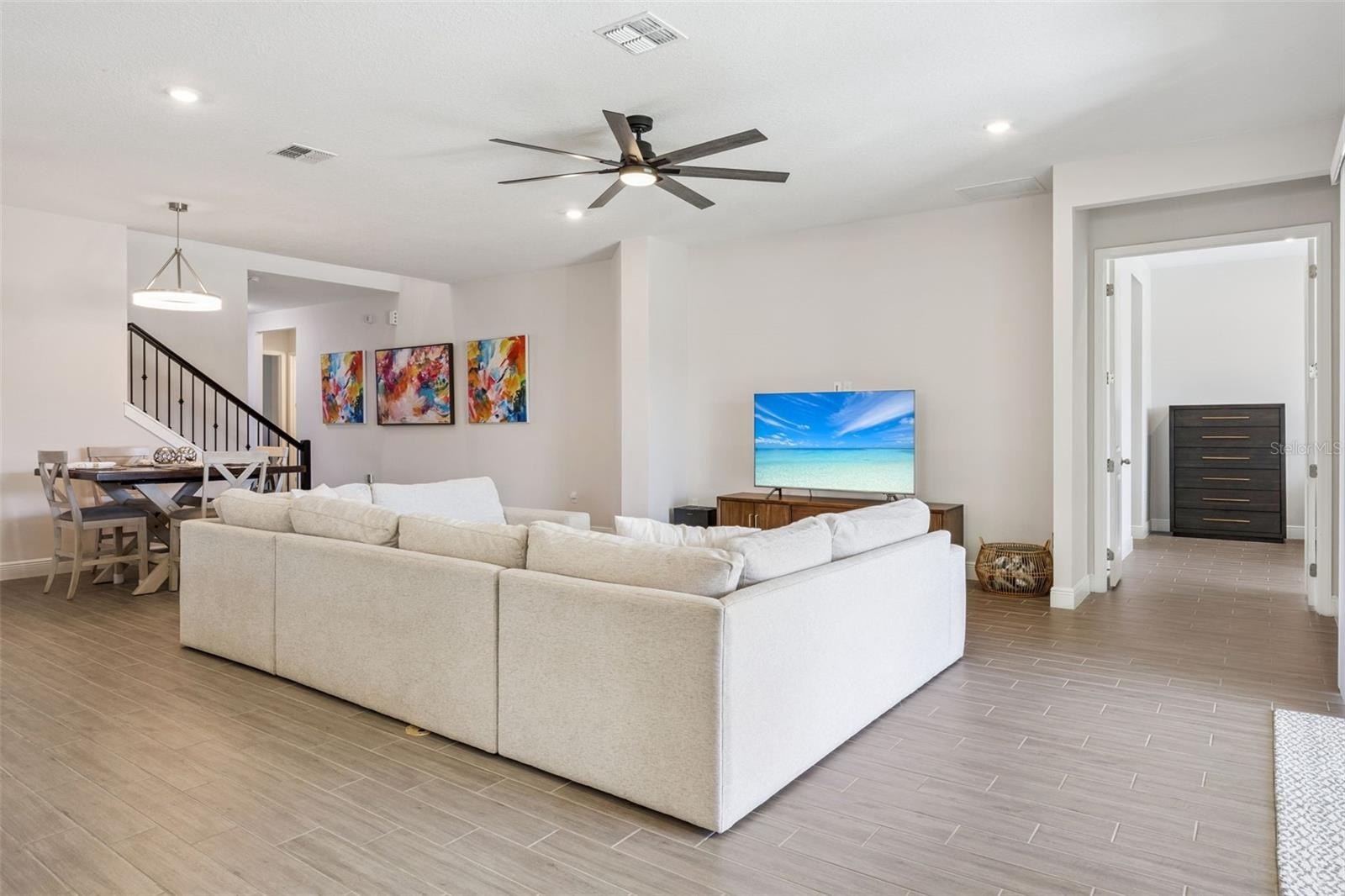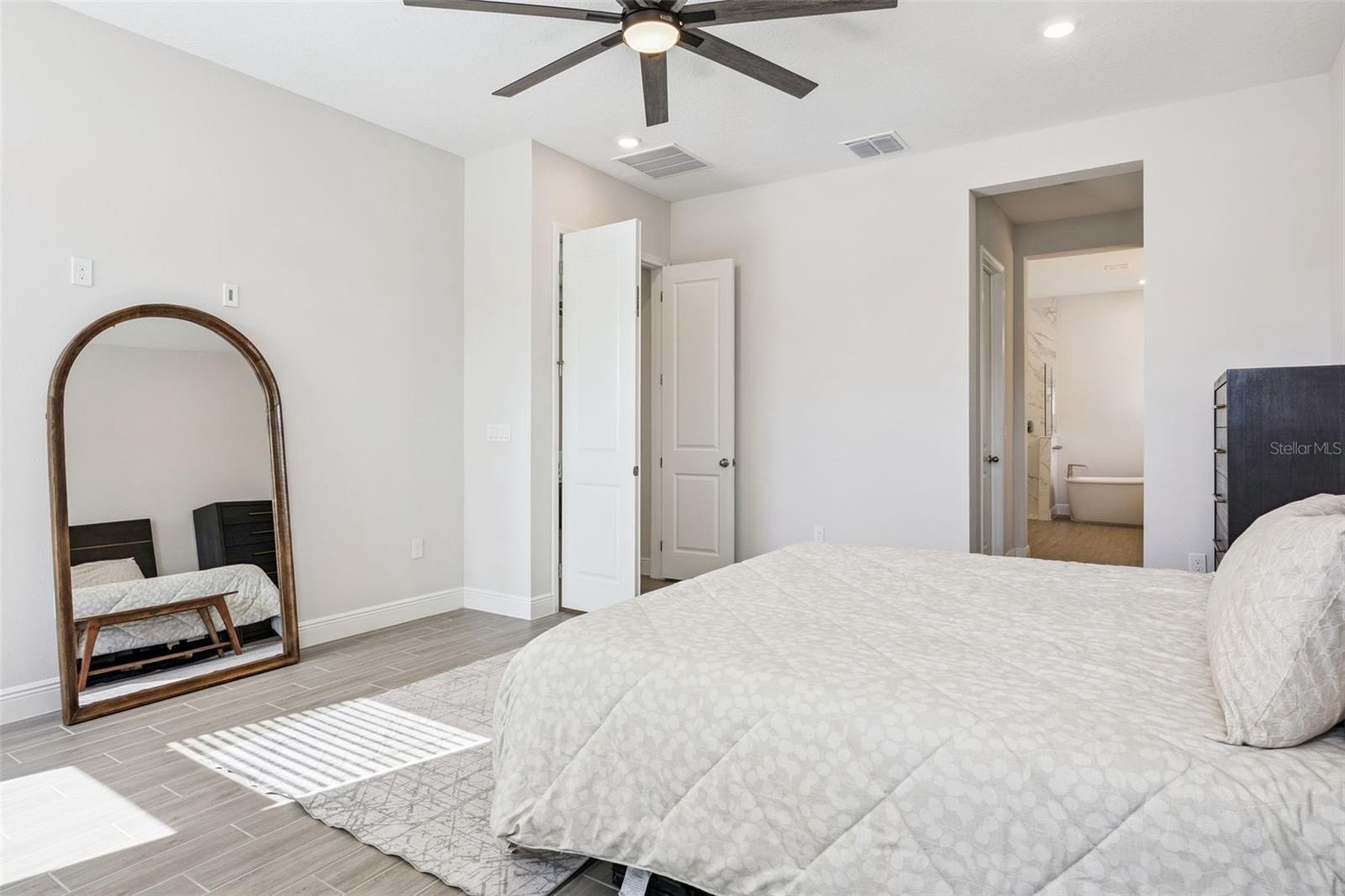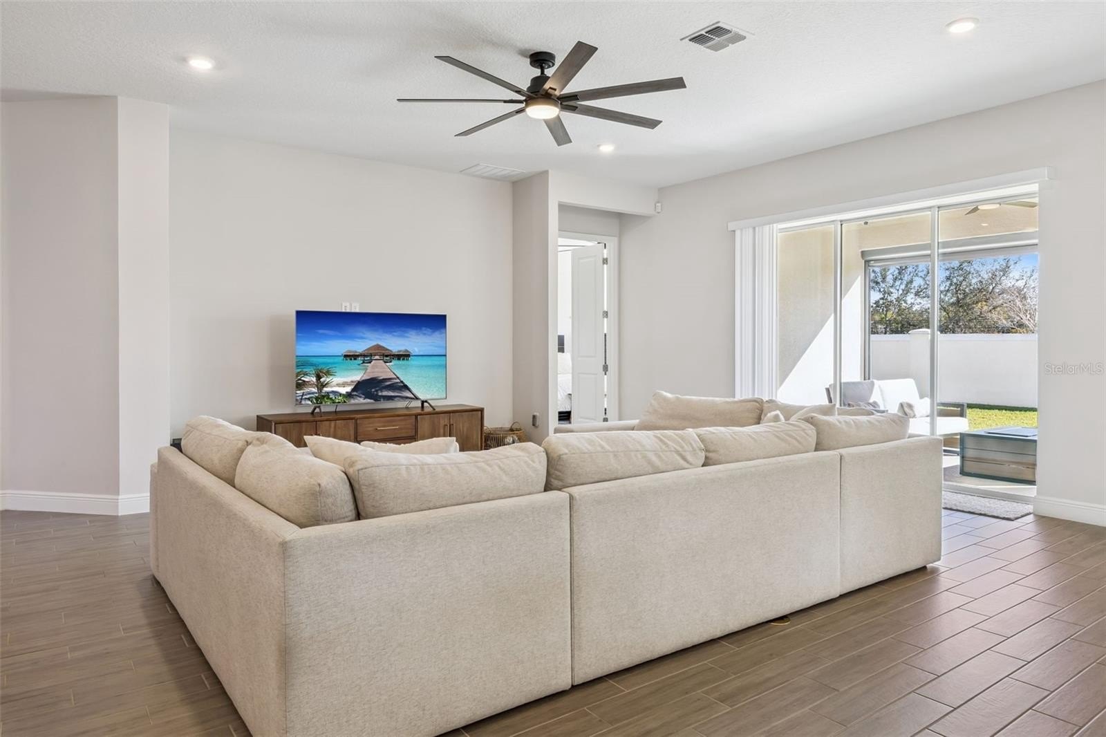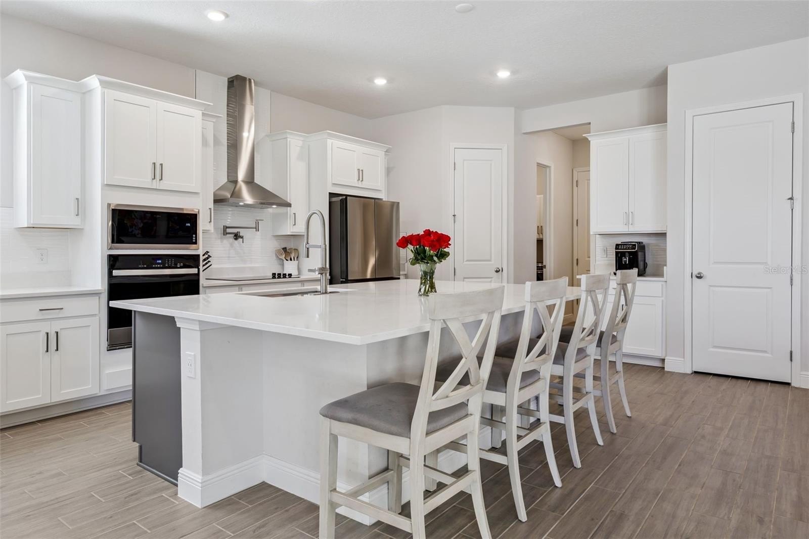 Better than new! Welcome to this stunning 7-bedroom, 4-bath home, built in 2024, and located in the highly sought-after Summerdale Park community of Lake Nona. Designed for modern living, this home features a spacious open-concept layout with wood-look tile flooring on the main level and luxury vinyl plank flooring throughout the stairs and second floor...no carpet anywhere. At the heart of the home is a chef-inspired gourmet kitchen, complete with a large center island, abundant counter space, quartz countertops, 42" Shaker cabinets, and premium stainless steel appliances, including a refrigerator, dishwasher, built-in microwave, oven, cooktop, and a convenient pot filler. The expansive family room flows seamlessly from the kitchen, making it ideal for entertaining and everyday living. Upstairs, a large loft provides flexible space for a media room, home office, or play area. The owner’s suite on the main floor is a true retreat, offering a generous walk-in closet and a spa-inspired ensuite bathroom with an elegant soaking tub and a walk-in shower featuring a luxurious rain shower head. Enjoy Florida living outdoors on the covered lanai with power shade, overlooking a fully fenced backyard, perfect for relaxing or hosting gatherings. Located near A-rated schools and just minutes from Lake Nona Town Center, Boxi Park, Medical City, USTA, and an abundance of dining and entertainment options. Easy access to HWY 417, Orlando International Airport, Disney, and Universal makes commuting and travel effortless. Summerdale Park amenities include a destination-style pool, community dock, and a vibrant neighborhood atmosphere, offering the best of Lake Nona living. Don't delay, schedule your private showing today.
