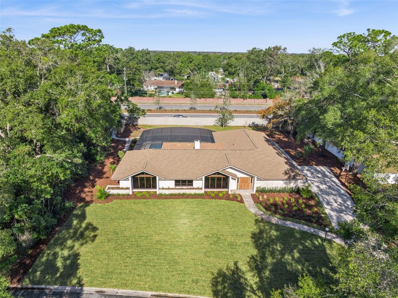 One or more photo(s) has been virtually staged. Elegantly renovated single-family residence offering 4 bedrooms and 3.5 bathrooms in the sought-after Longwood area, conveniently located near I-4, premier shopping, and dining. This home has been thoughtfully updated throughout, featuring a new roof, updated AC and electrical systems, fresh interior and exterior paint, and enhanced landscaping with irrigation. The custom kitchen showcases solid wood cabinetry, stone countertops, and stainless steel appliances, complemented by beautifully renovated bathrooms with updated lighting and fixtures throughout the property. A spacious screened-in pool with a new enclosure creates a private outdoor retreat, while a large exterior shed provides additional storage. The impressive bonus great room features refinished wood flooring and a wet bar, creating an exceptional space for entertaining. A rare opportunity to own a move-in-ready home with extensive upgrades!