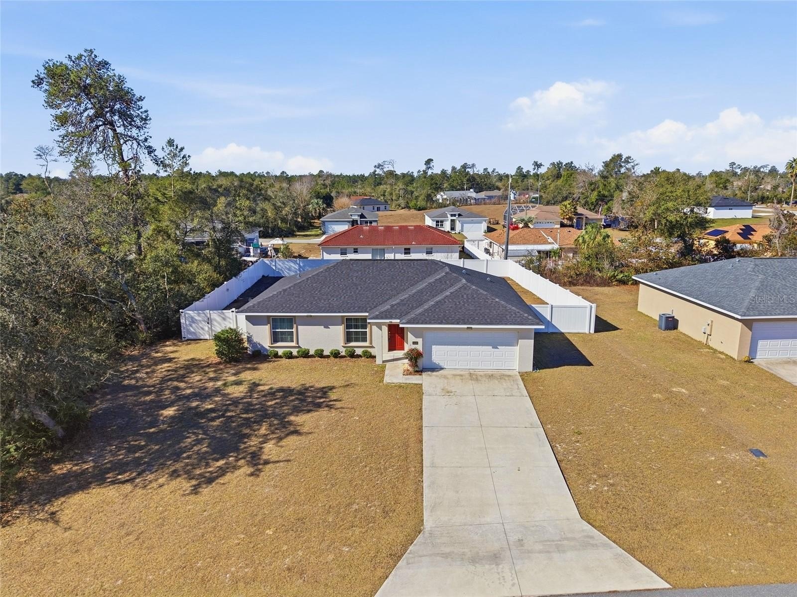 PRICED TO SELL!!! Move-in ready Marion Oaks home with bright kitchen, stainless steel appliances, pantry, and great cabinet space. Split bedroom layout with primary suite featuring walk-in closet and en-suite bath. Indoor laundry with washer/dryer included. Step outside and enjoy your private outdoor oasis with big fully fenced yard, adding privacy, for a pergola, playground, pool, anything your heart desires. It's perfect for morning coffee, evening relaxation, or weekend BBQs. A 2-car garage adds even more storage and everyday convenience. Roof, HVAC, and water heater all (2020) - so there are no major expenses waiting. No HOA. Excellent investment opportunity offering versatility for either long-term leasing or short-term rental use. Residents of Marion Oaks enjoy access to exceptional community amenities including a splash pad, pickleball, basketball, volleyball, and tennis courts, a fitness center with low annual membership, community center with meeting rooms, and a public library. Shopping is just minutes away with Aldi, Dollar General, and more nearby, plus the added reassurance of a Marion County Sheriff’s Office located within the community. Conveniently located just 10–15 minutes from SR-200, with quick access to I-75, medical centers, dining, parks, hiking trails, and only a short drive to the World Equestrian Center — this home is ideal for families, professionals, or anyone seeking comfort, value, and location.