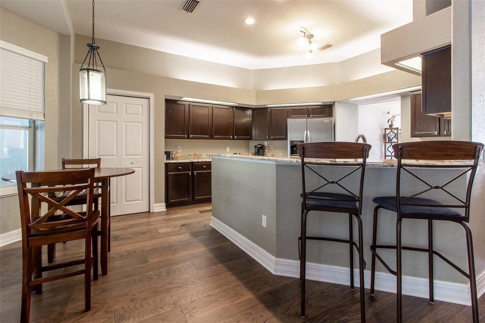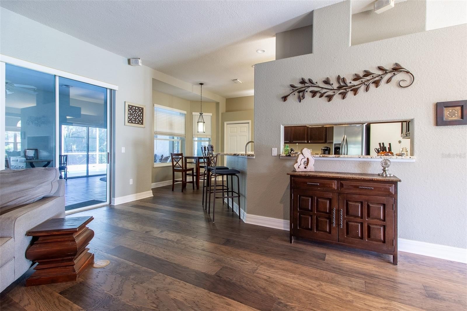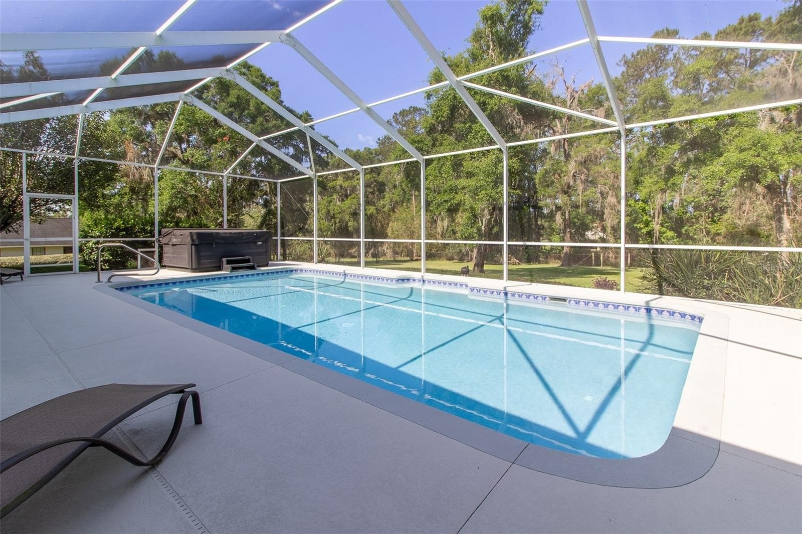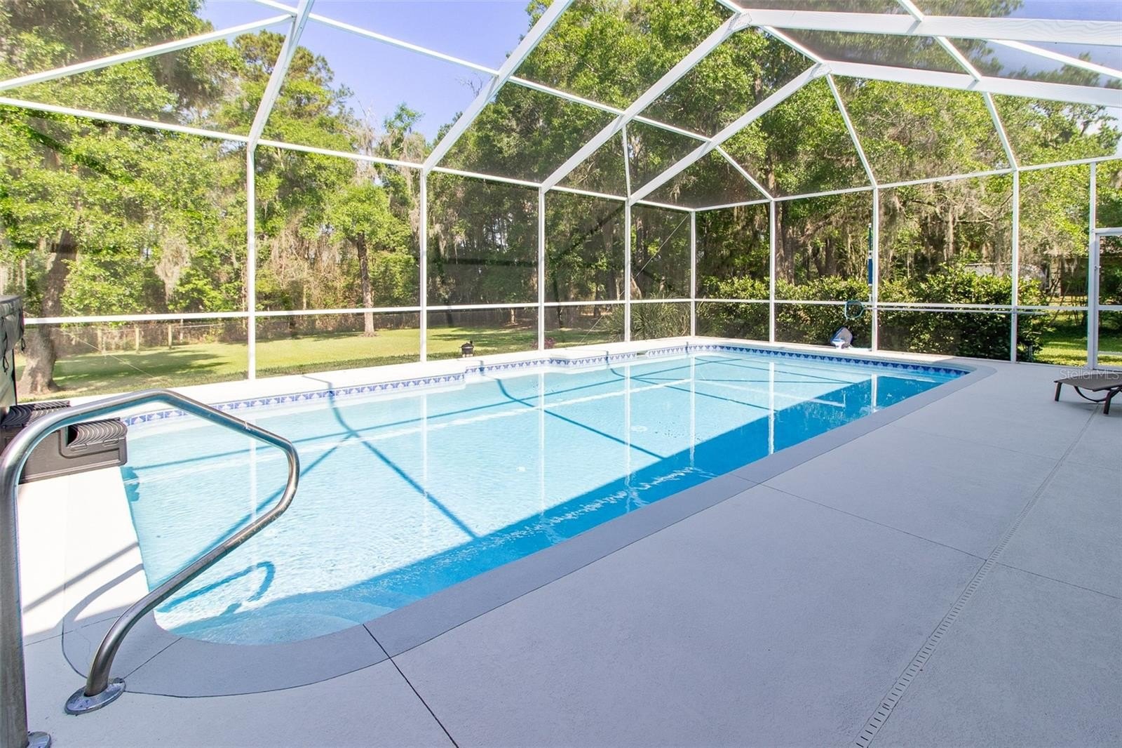 Rare opportunity in popular Carriage Trail. This 4-bedroom, 3-bath home offers 3,158 sq ft of thoughtfully designed space on a 1.01-acre lot. Very affordable HOA. The property includes three distinct living areas, a screened-in pool, and a fenced backyard that backs onto a quiet, private setting. Inside, the home features high ceilings and new hickory hard wood wide plank wood flooring throughout with tile entry. A wood-burning fireplace anchors the front living room, while the climate-controlled Florida room and spacious family room provide flexible space for relaxing or entertaining. The kitchen is equipped with ornate-edge granite countertops, Frigidaire stainless steel appliances, a KitchenAid dishwasher, built-in microwave, pantry, and an eat-in area. The split-bedroom plan includes a generous primary suite with two closets, access to the lanai, and an updated bath featuring a standalone ceramic tub and private water closet. Additional features include a two-car garage with extra storage, a tiled laundry room with counter space. Located near the Country Club of Ocala and the Florida Greenway and Santos Trail, with convenient access to golf, cycling, dining, and recreation. Carriage Trail is a hidden gem community with houses on one acre lots in a very convenient central location. This is a house you will want to see and make it yours! Call to schedule a showing today.