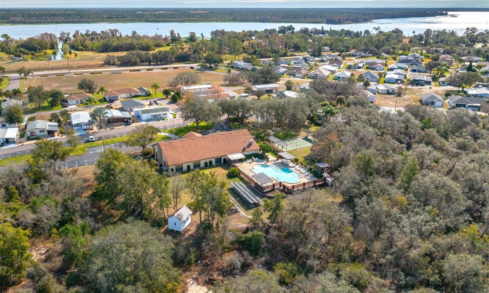 EVERYTHING ABOUT THIS HOME SAYS WELCOME!! Beautifully updated and very spacious 2 bedroom 2-bathroom single family home in a 55+ great community with very low HOA fee that includes a heated pool, a clubhouse with planned activities, a dog park, fishing tournaments on Lake Pierce, a fitness center, and more. If you like to fish and go boating, Lake Pierce is only a couple of blocks away. There is so much potential here the opportunities are endless! It has a Florida Room on the front, and a Florida room in the back, plus a huge, covered patio in back. The garage and the workshop are enormous with a combined square footage of over 1,100. You could make an in-law suite, a game room, or add bedrooms and bathrooms, or just love it the way it is! If you enjoy gardening, the backyard is a dream come true. The landscaping is unique and low maintenance. The AC was new in 2024. This home includes double paned windows that is very helpful with electric bills. The inside of the home is beautiful and immaculate. The workshop is air conditioned. There is a breakfast bar, granite countertops, stainless steel appliances. It's a split bedroom plan and the primary bedroom has 3 closets. This home offers so much storage space; you won't have a problem having a place for everything with room to spare. A peaceful setting but close to conveniences like, shopping, restaurants, medical, and the Orlando theme parks and beaches on both sides of the state are all within an hour and a half drive or less. There is so much to boast about that it's impossible to put it all into words. You really must see this home to experience the comfort, relaxation, and possibilities that comes with it. Make your appointment to see this amazing property!