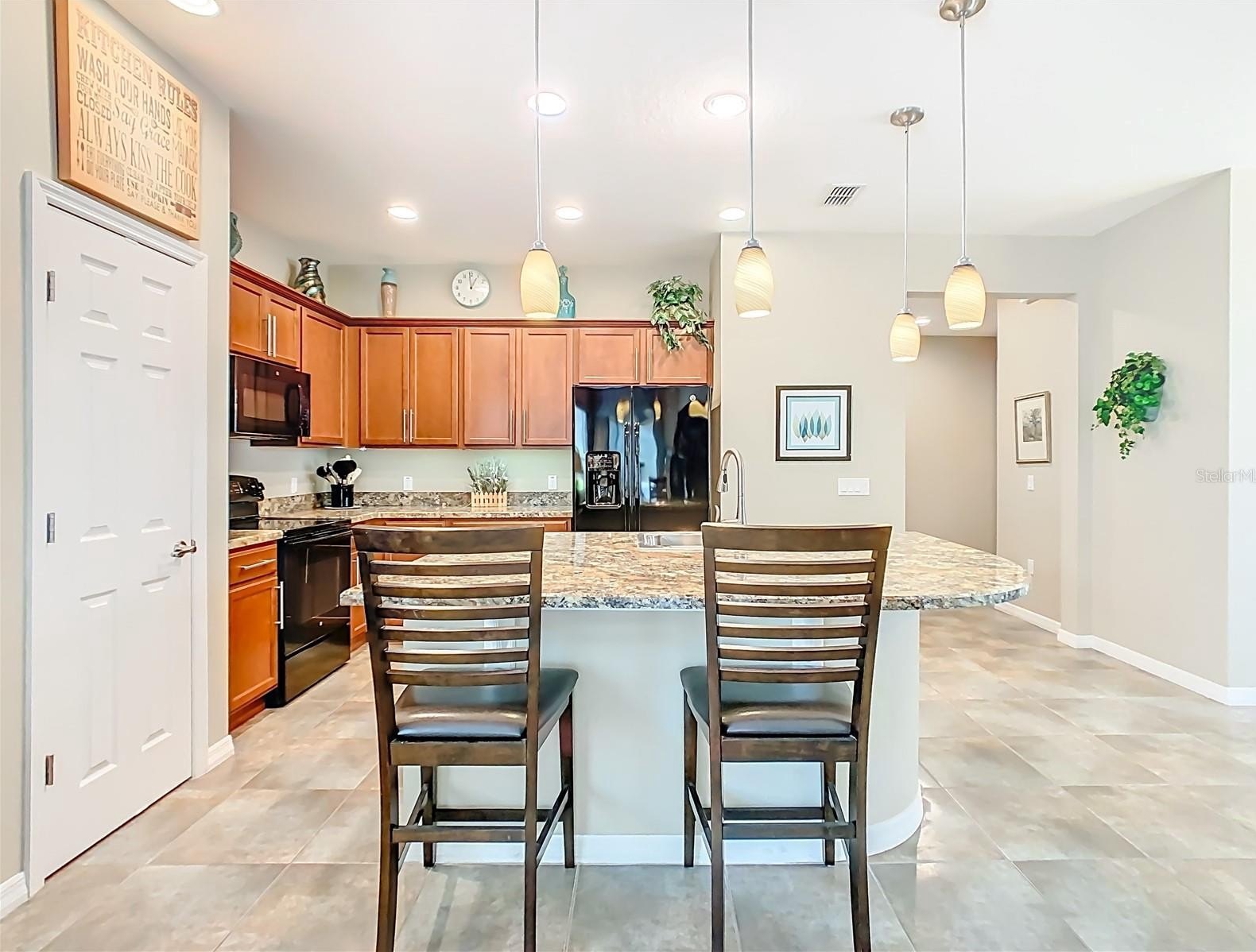 **See the FULL LENGTH VIDEO on Tour Link 1.** LOCATION, LOCATION, LOCATION… This Meticulously Maintained 2 Bedroom/2 Bath EVERGLADES MODEL home with a DEN is located on a BEAUTIFUL CONSERVATION LOT in MIRA VISTA. Built in 2013 and used as a snowbird home, the upgrades to this home include a GOLF CART GARAGE, DOUBLE PANE LOW E-WINDOWS, a SCREENED-IN EXTENDED REAR LANAI overlooking CONSERVATION, UPDATED LIGHTING FIXTURES & CEILING FANS, a WATER SOFTENER, CERAMIC TILE throughout the Living areas, and upgraded carpet in the Bedrooms & Den. The OPEN CONCEPT KITCHEN features 42” MAPLE CABINETS, a DOUBLE WIDE UNDERMOUNT SINK, and a BREAKFAST BAR for enjoying meals. There’s a separate area for more formal dining off the Kitchen, a CLOSET PANTRY, and is OPEN to the Great Room. The Owner’s Suite features BEAUTIFUL CONSERVATION VIEWS, a WALK-IN CLOSET, an attached en-suite bath with DUAL SINKS, a large WALK-IN SHOWER, and a separate Water Closet. The 2nd Bedroom and bath, which are located at the front of the home, help create a SPLIT PLAN. The EXTENDED SCREENED LANAI offers some quiet space or can serve as an entertainment space to enjoy the conservation views. A separate laundry room & two-car garage, plus a golf cart garage, complete this lovely home. ***Solivita is an active adult 55+ community located in Kissimmee, Florida. It is approximately 50 minutes from Disney World & the Orlando International Airport. Solivita has a total of 5,470 homes. Approximately 10,000 - 11,000 people live in Solivita during the winter while approximately 7,500 live in Solivita during the summer. Enjoy your active years in this piece of paradise. Solivita's amenities include: - a manicured SOFTBALL diamond & field - 36 holes of CHAMPIONSHIP GOLF that can be played by joining the Stonegate Golf Club or paying as you go - 2 STATE of the Art AMENITY centers with updated exercise equipment, yoga studio & meeting rooms - 3 restaurants - 14 HEATED POOLS - 17 PICKLEBALL courts - 9 TENNIS courts - 4 BOCCE BALL courts - 4 SHUFFLEBOARD courts - 3 HORSESHOE pits - a BILLIARDS room - miles of bike paths - 2 DOG PARKS (Small & Large Dogs) - Corn Hole - Tot Lot PLAYGROUND - COMMUNITY GARDEN - over 250 resident clubs. The HOA: - maintains the LANDSCAPING & IRRIGATION systems in the common areas as well as at individual homesites - maintains the roads throughout the community - PROVIDES SECURITY with gate guards and mobile patrols including the Polk County Sheriff - allows AUTOMATED GATE ACCESS for residents via license plate readers - provides residents with Fiber Optic Internet & TV service.***Poinciana Lakes Plaza is a MAJOR NEW SHOPPING CENTER that opened directly across from the Solivita Main Gate in Summer of 2024. It features Sprouts Grocery, TJ MAXX, Ross, Burlington, Rack Room Shoes, 5 Below, Ulta, Outback, First Watch, 5 Guys, Urgent Care, Dentist, TD Bank, Petco, Hair Cuttery, Encore Nails & Spa, Coldstone Creamery & more***