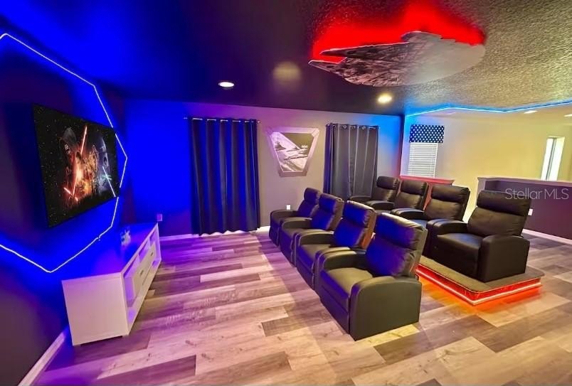 This beautifully renovated six-bedroom, 4.5-bath villa is located in the sought-after Windsor at Westside Resort, just a short walk to the community clubhouse. Designed for comfort and entertainment, the home features multiple themed bedrooms, including fantasy-inspired designs, and a private Star Wars-themed cinema room ideal for family movie nights.