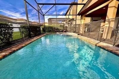 The open floor plan offers spacious living areas, king suites, and bunk bedrooms, accommodating up to 15 guests. Outdoors, enjoy a private sun-filled pool perfect for relaxing after a day at the parks.