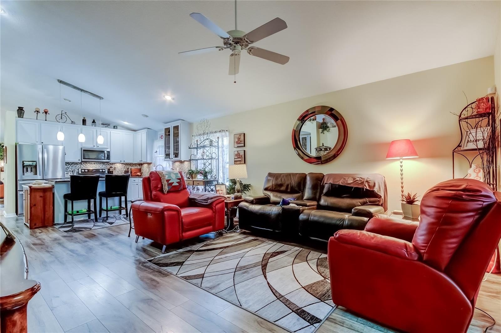 Inside, the open layout is filled with natural light and designed for both entertaining and easy living. The owners have poured real love into this home and it shows. The kitchen is the heart of it all, with crisp white cabinets, upgraded hardware, granite countertops, stainless steel appliances, and a seamless flow into the family room. From there, step into the enclosed Florida room, formerly the patio, now the perfect spot for morning coffee, afternoon reading, or evening unwinding.