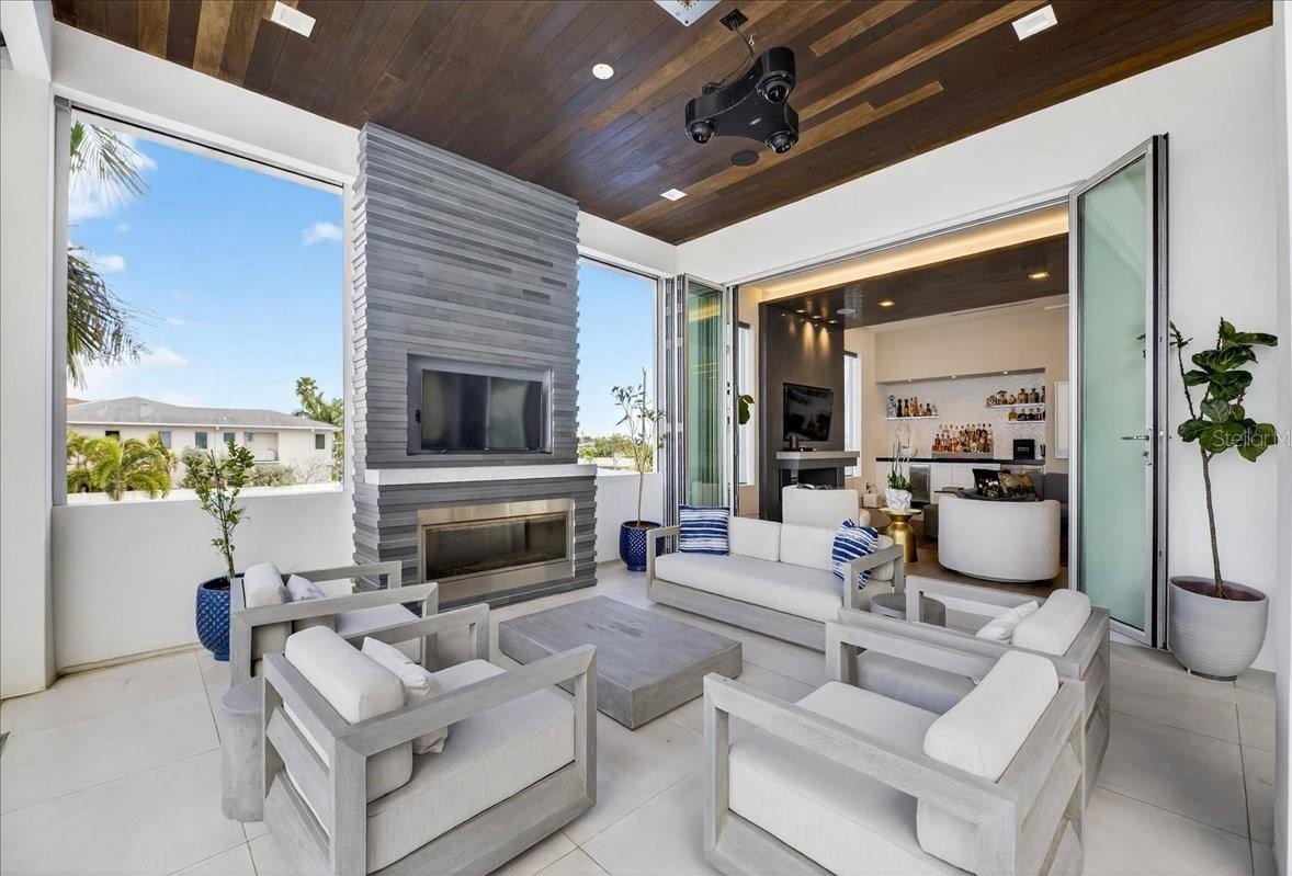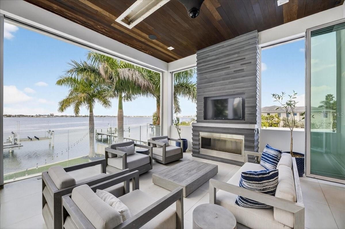 Balconies each level w/ outdoor kitchen/BBQ, fireplace, auto screens, heaters, misting fans