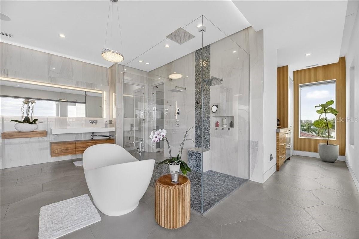 The primary suite is a private retreat with a dual-sided fireplace, spa-inspired bath, and an oversized patio with spa overlooking Boca Ciega Bay. Every room captures water views, creating a daily experience that feels equal parts resort and residence. Positioned north-facing on a beautiful island community with one of the area’s only private beaches and a large lap pool/spa, this is a rare combination of bespoke construction, true boating infrastructure, and elevated coastal living.