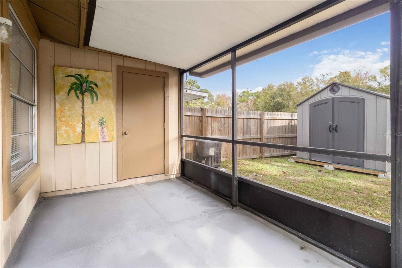 The home features a screened porch and fenced backyard with peaceful pond and conservation views, plus a newly added storage shed (8'x12.5') located inside the fenced yard. Inside, the space feels open and welcoming with a layout that lives larger than its square footage.