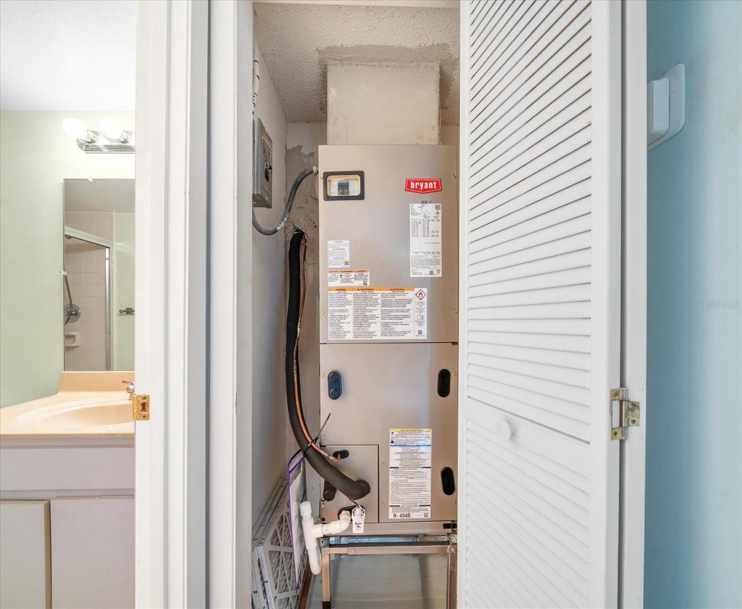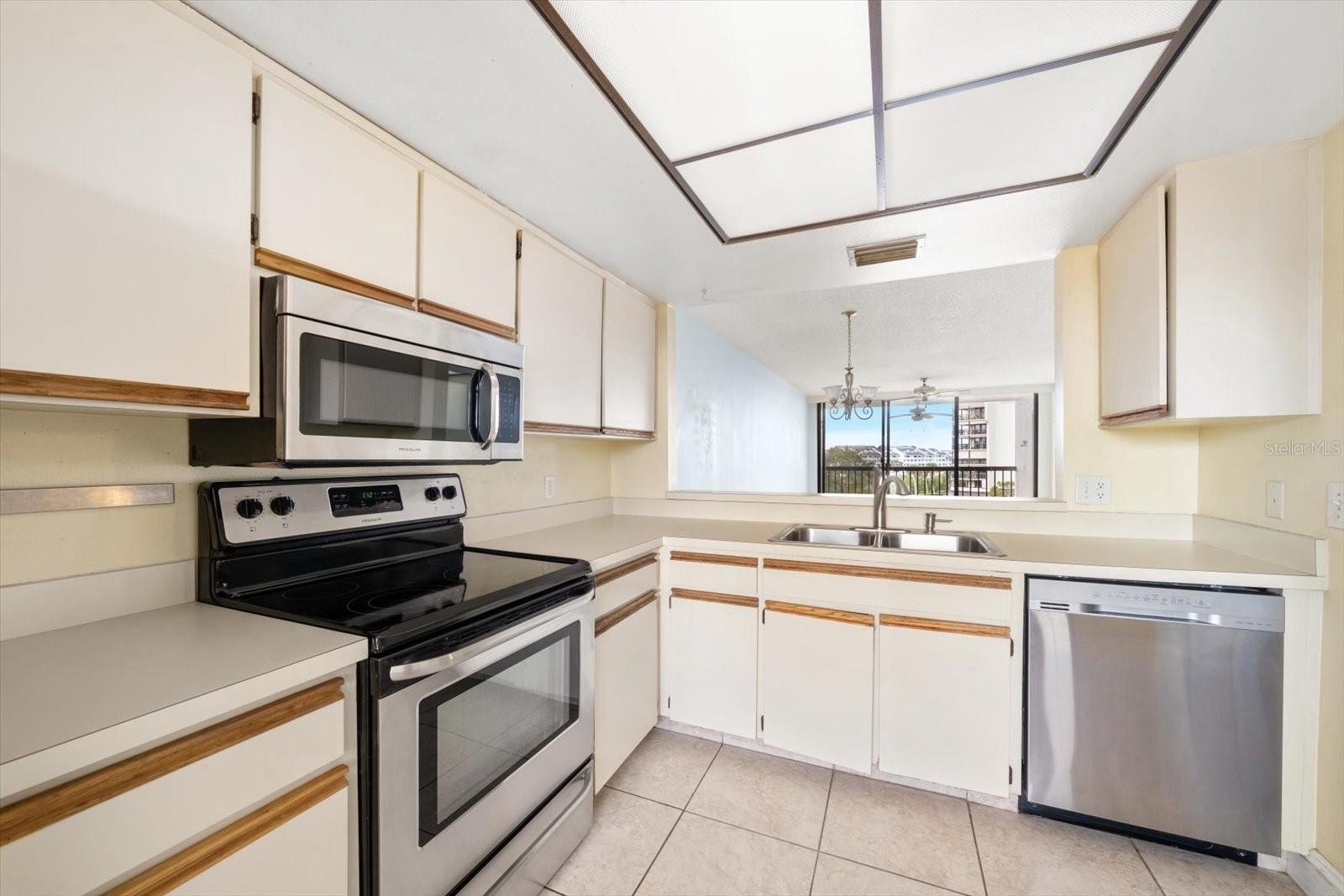 Inside, the spacious layout offers a large kitchen with dining space, breakfast bar, and indoor laundry with washer and dryer. The open living and dining area features a wet bar and a wall of sliding glass doors that lead to a generous 13’ x 8’ balcony, perfect for relaxing or entertaining with water views as your backdrop. The primary suite includes private balcony access, an en suite bath, and a huge walk-in closet. A desirable split-bedroom plan provides privacy for guests, with a walk-in closet and a full hall bath featuring a walk-in shower. A new A/C adds comfort and peace of mind.