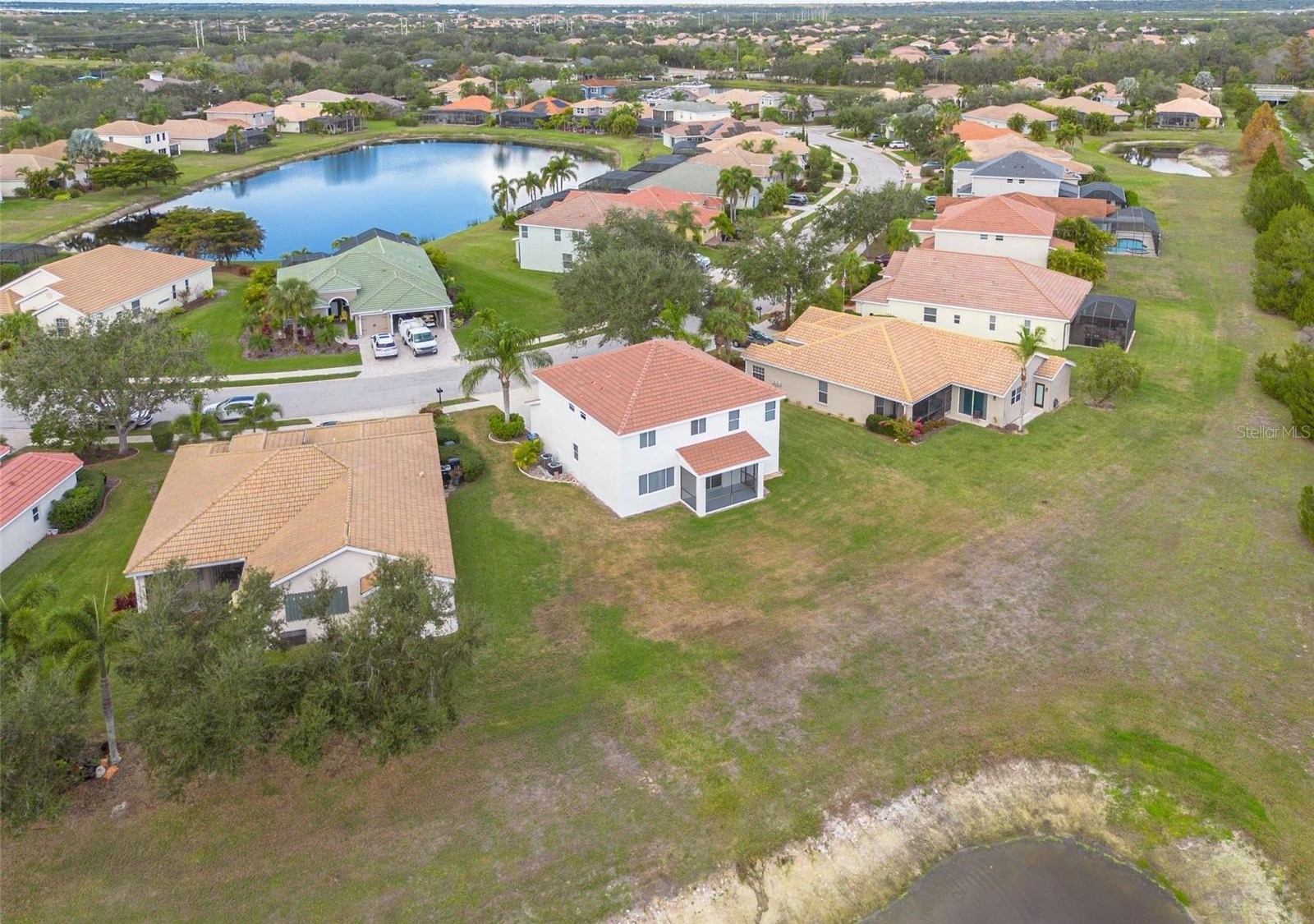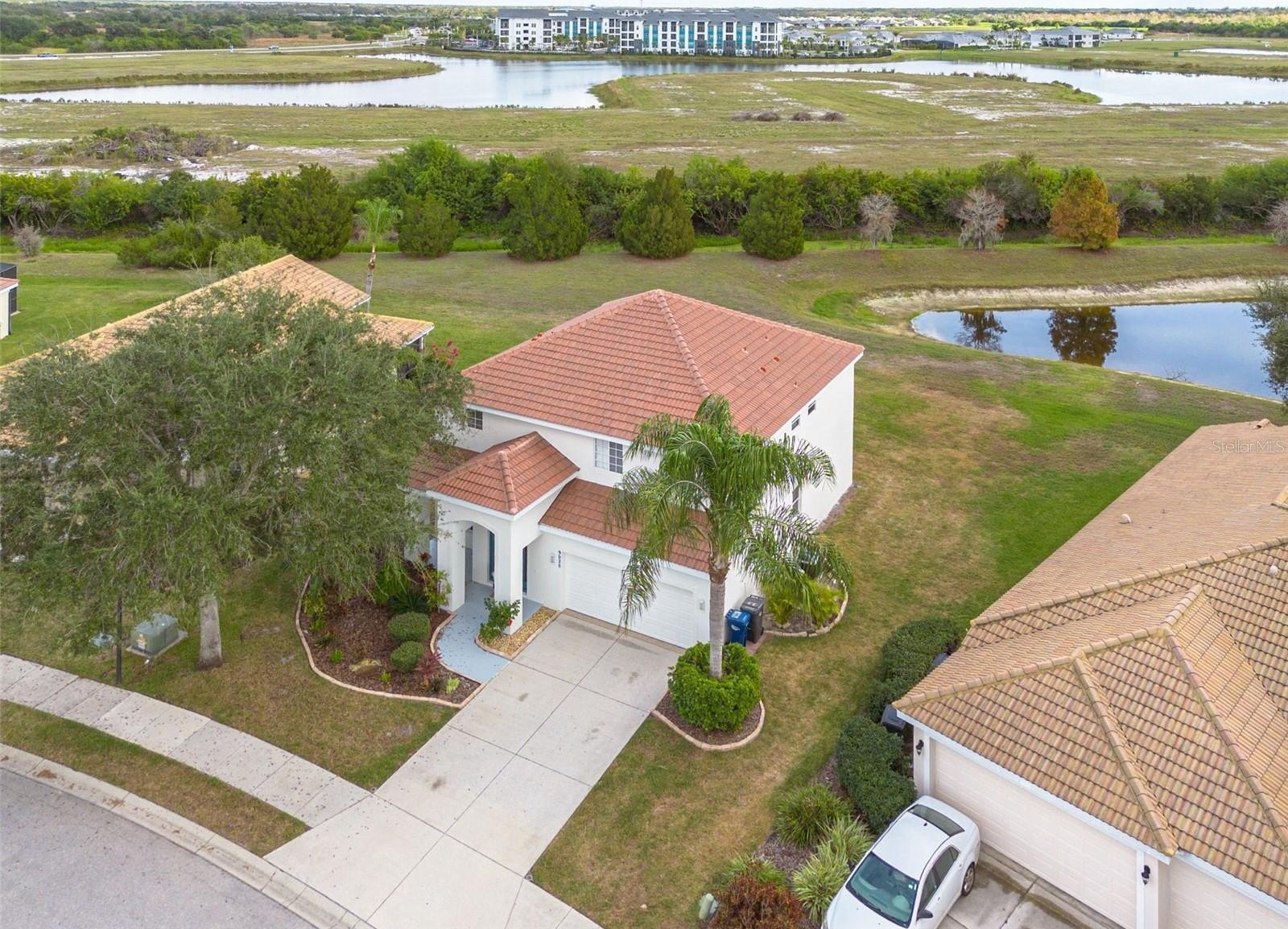 Spacious Living with Lake and Conservation Views! Located in the established resort-style community of Heritage Harbour, this home offers a quiet retreat with a functional, open layout. The large backyard and screened porch provide a private outdoor space overlooking a serene lake and protected conservation area. The heart of the home is a wide-open living space that connects the kitchen to a combined dining and family room. The kitchen is designed with both storage and utility in mind, featuring, rich Cherry Spice cabinetry and a custom backsplash, an integrated desk area for a convenient home workstation, a layout optimized for hosting and daily meals. *NEW roof installed in 2025* Upstairs, the oversized primary suite includes a dedicated sitting area that easily doubles as a private home office. There are three additional bedrooms and three full bathrooms on the second floor, providing plenty of space for family or guests. A half-bath is conveniently located on the main level. Heritage Harbour offers an impressive array of amenities with low fees, including a public golf course, tennis, pickleball, and heated pools. The clubhouse features a fitness center and a full calendar of activities. The home is in walking or biking distance to soccer and baseball fields. Easy access to I-75 for quick trips to Lakewood Ranch, Sarasota, and area beaches. Local elementary and middle schools are located just down the road. Whether you are looking for a primary residence or a reliable rental investment, this property offers significant value in a prime location.