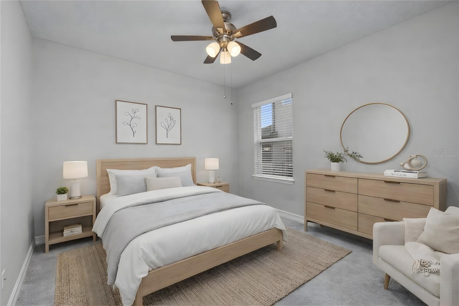 The living room has a tray ceiling with a center plug and ceiling-speaker hookups if you want to set up surround sound. Every room has ceiling fans with remotes—one of those small things that makes Florida living so much more comfortable.