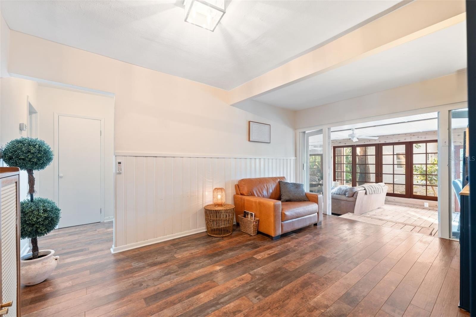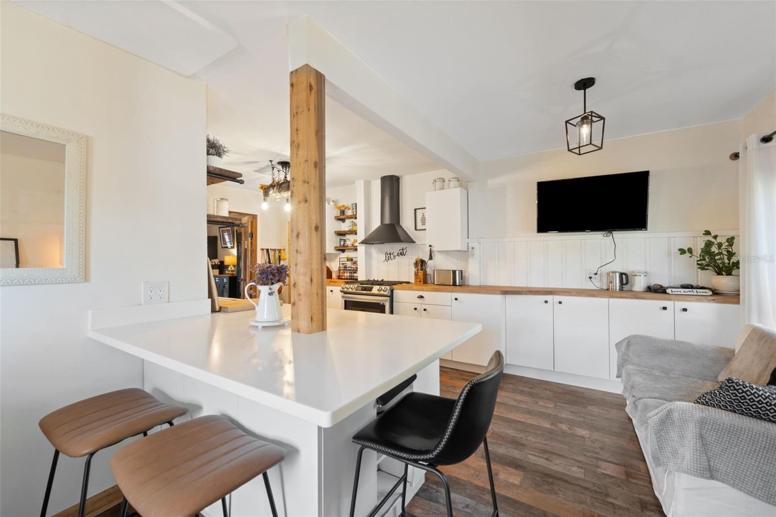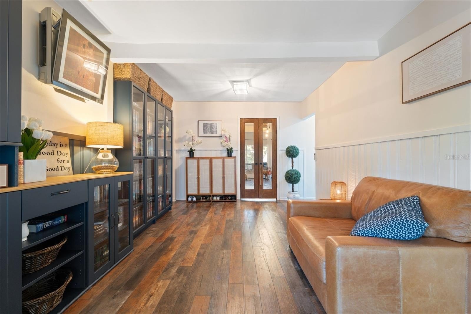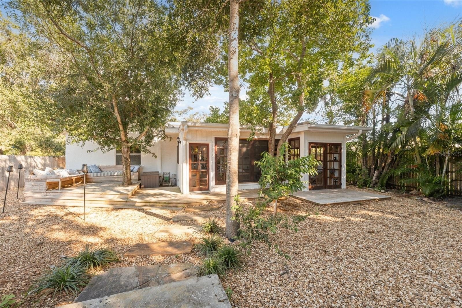 Ideal location, close to downtown Dunedin and the Pinellas Trail. This one-of-a-kind home is rich in character, beautifully renovated with a European-inspired aesthetic throughout. Set on a spacious-feeling lot, the property offers peace and privacy with the home thoughtfully set back from the road, providing ample parking, a large front yard and an inviting outdoor sitting area.