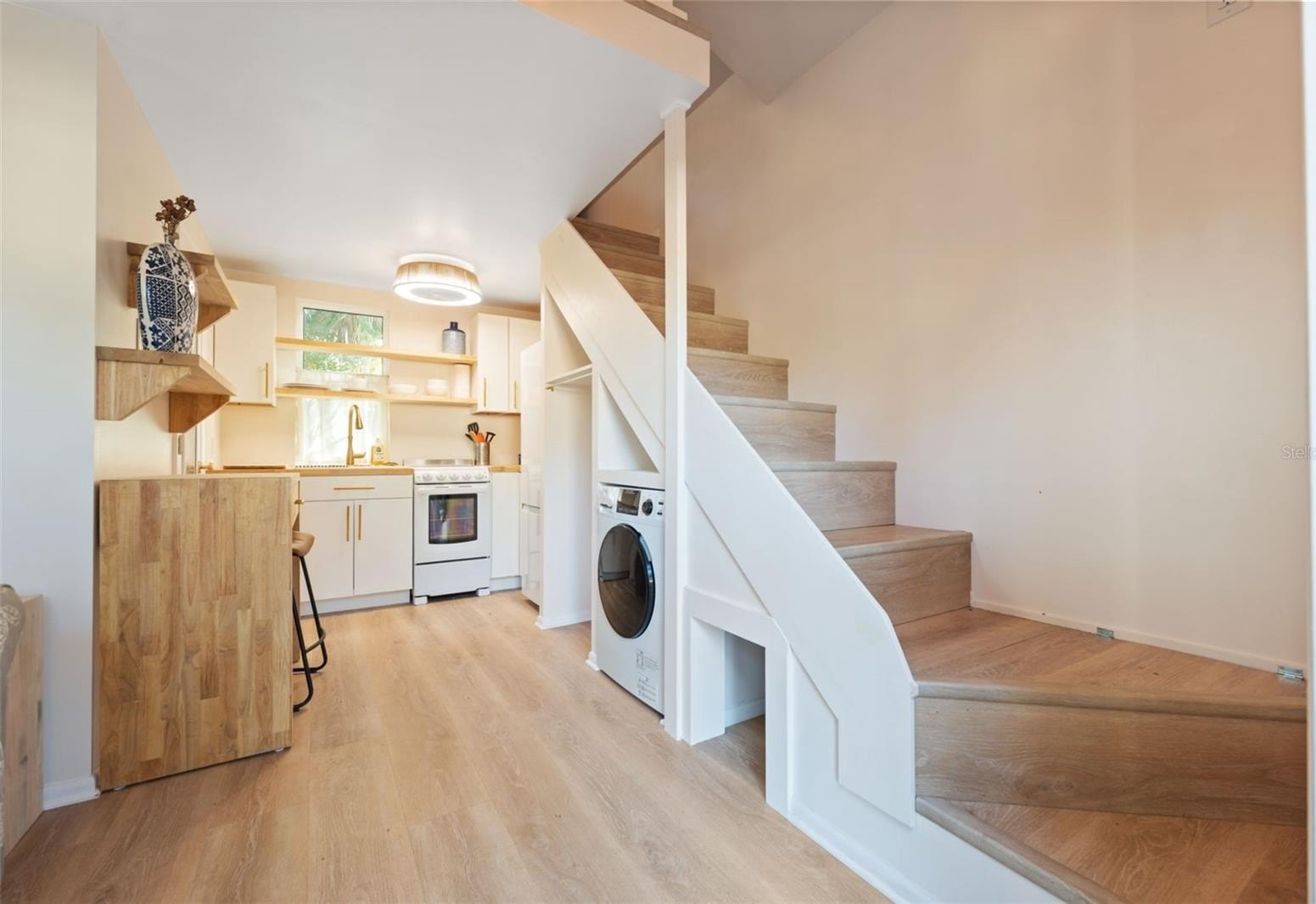 Major updates include a newer roof, an on-demand energy-efficient hot water system, a highly economical and multi-zone mini split ductless AC which can switch to provide whole-house heating via the built-in highly efficient heat pump. The kitchen, bathroom, laundry, bedrooms and living room were all aesthetically updated and designed for practical living.