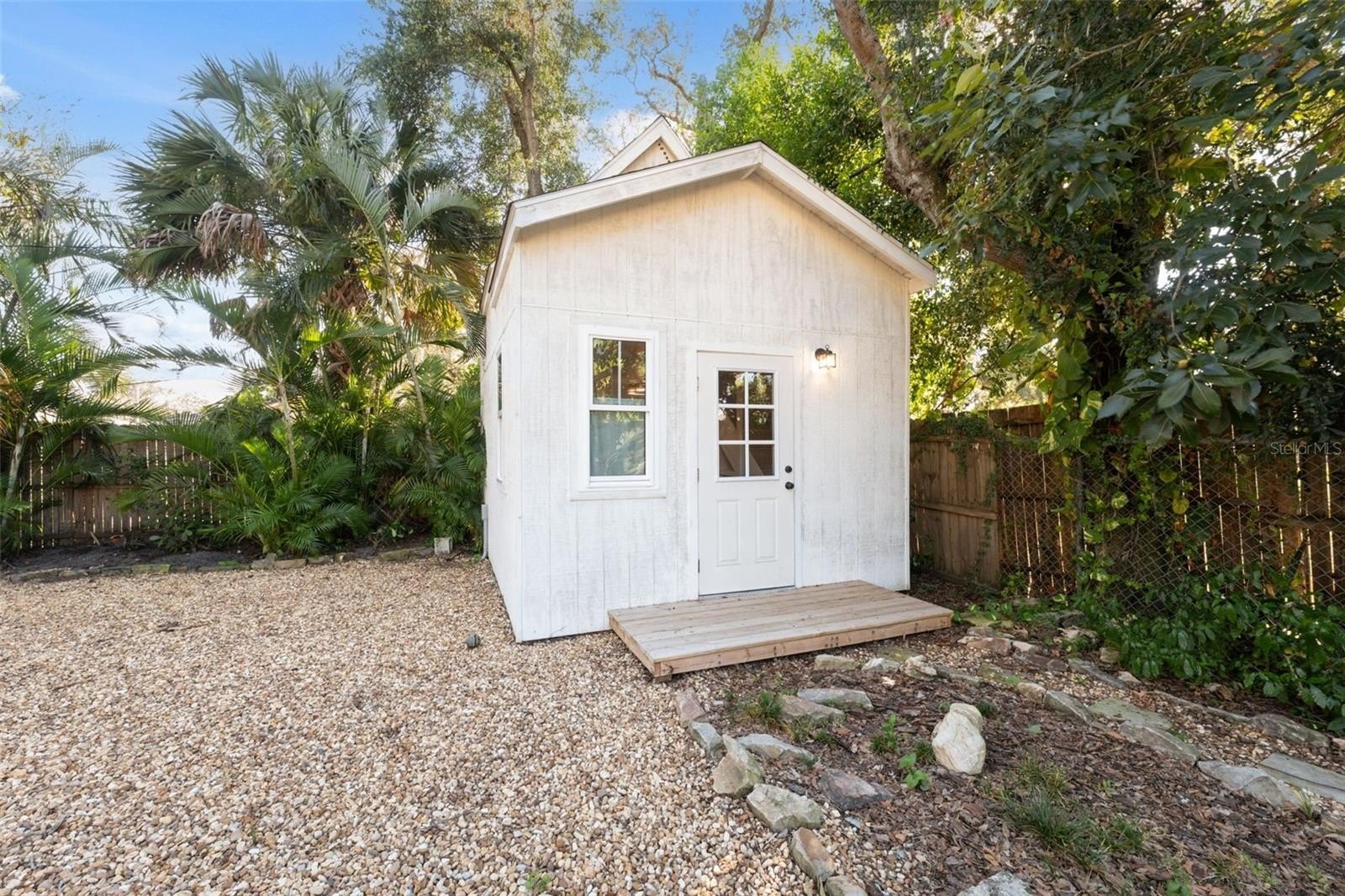 Outdoor living is a highlight of the property. The backyard includes a large covered rear porch and open-air patio and deck, perfect for relaxing or hosting gatherings. A charming detached structure is also located in the rear yard and may be enjoyed as a flexible space such as a studio, office or retreat (not marketed as a living unit).