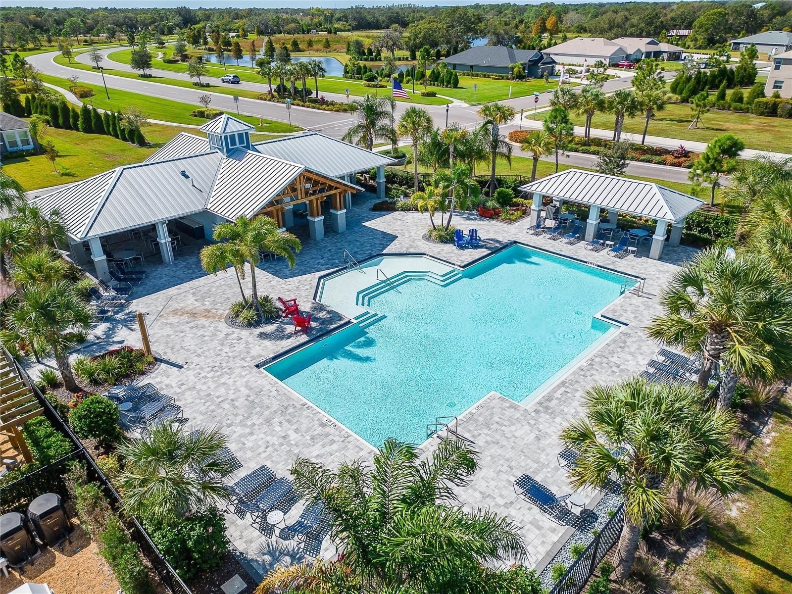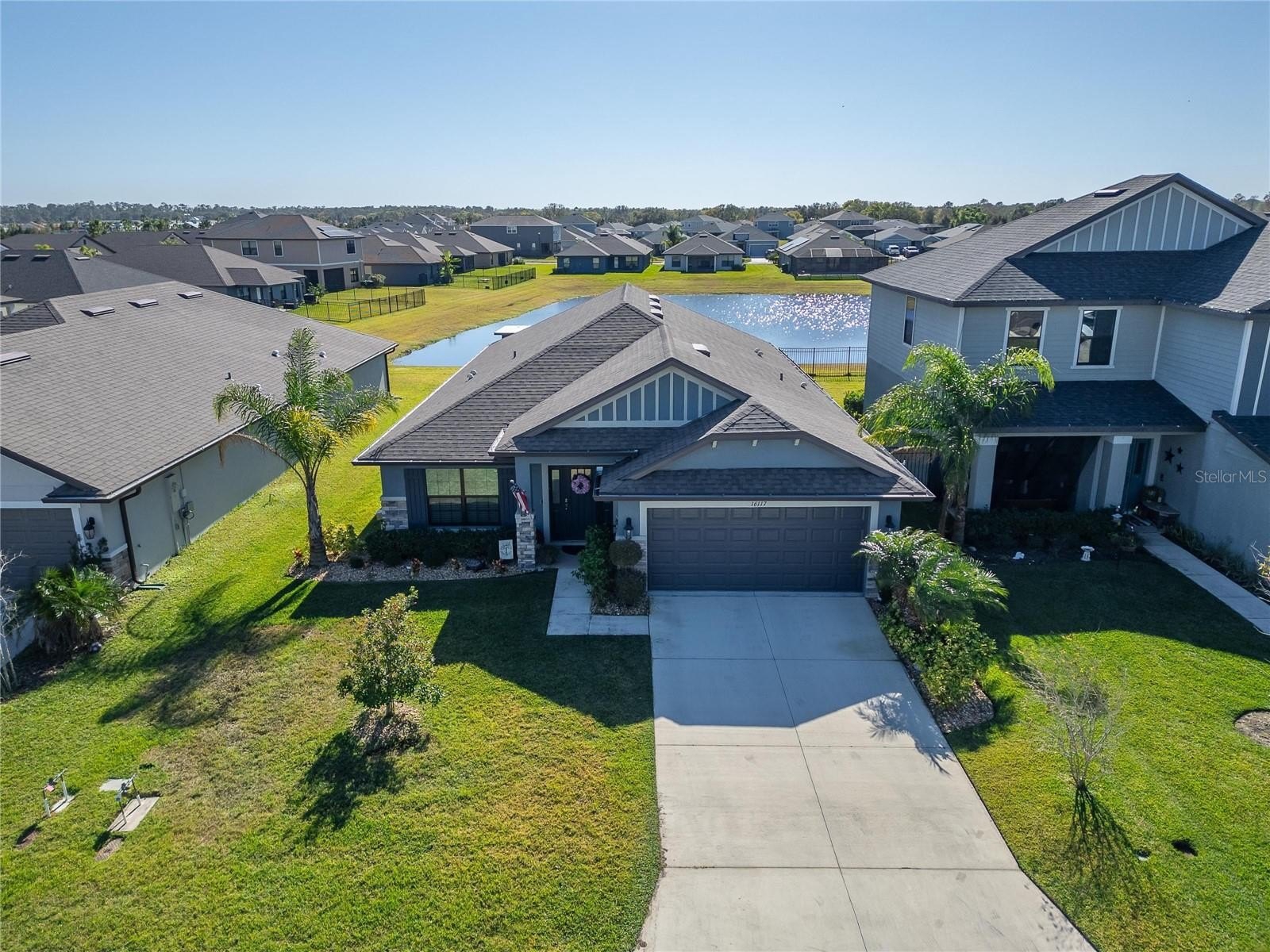 Welcome home to Aviary at Rutland Ranch—an inviting Gulf Coast community where comfort, style, and Florida living come together beautifully. Start your mornings on the front porch with a cup of coffee, then unwind in the evenings on the spacious covered lanai overlooking a peaceful pond—perfect for entertaining or simply relaxing and enjoying the view. Built by Adams Homes in 2020, this thoughtfully designed 4-bedroom, 3-bath home offers a bright, open layout and standout curb appeal with attractive stone accents. Step inside to a welcoming hallway and a spacious dining room, ideal for hosting gatherings with room for an eight-seat table. The stylish and functional kitchen features granite countertops, white cabinetry, pantry, island, breakfast bar, and a sunny side window that fills the space with natural light. Up front, two bedrooms share a well-appointed bathroom with double sinks, a private water closet, and a tiled tub/shower combo—perfect for family or guests. At the heart of the home, the open living area showcases gorgeous views through double glass doors leading to an extended lanai, and tranquil pond beyond—your own private backyard retreat. The spacious primary suite offers pond views, a tray ceiling, walk-in closet, and an ensuite bath with double vanities, private water closet, and a beautifully tiled walk-in shower. Additional highlights include a utility/laundry room plus a two-car garage. Residents of The Aviary enjoy top-notch amenities including a resort-style pool with covered seating and pond views, two pickleball/tennis courts, a half-court basketball area with additional gathering spaces, playground, and scenic walking paths. Conveniently located near top-rated schools, shopping, and Fort Hamer Park—where you can launch your boat and enjoy the Manatee River, Tampa Bay, and the Gulf. You’re also ideally situated between St. Pete and Sarasota, close to Lakewood Ranch, Anna Maria Island, and just about an hour to Tampa for sports, dining, and city life. And yes—some of the nation’s best beaches are right here waiting for you. Don’t miss your chance to make this Florida dream home yours!