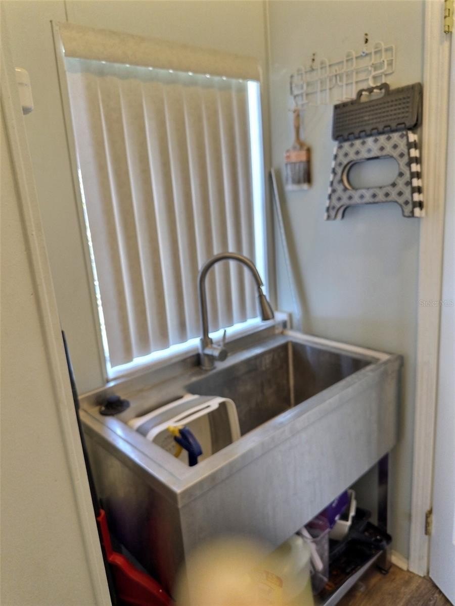 cabinetry and a large stainless steel laundry sink.