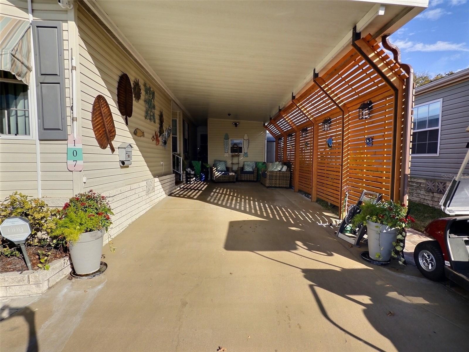 screening on the carport with solar lighting. On the sides of the home are in laid pavers large