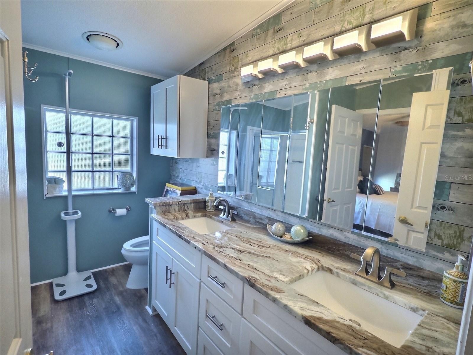 bedroom and en suite include custom closet organizer, dual sinks, and large linen closet which