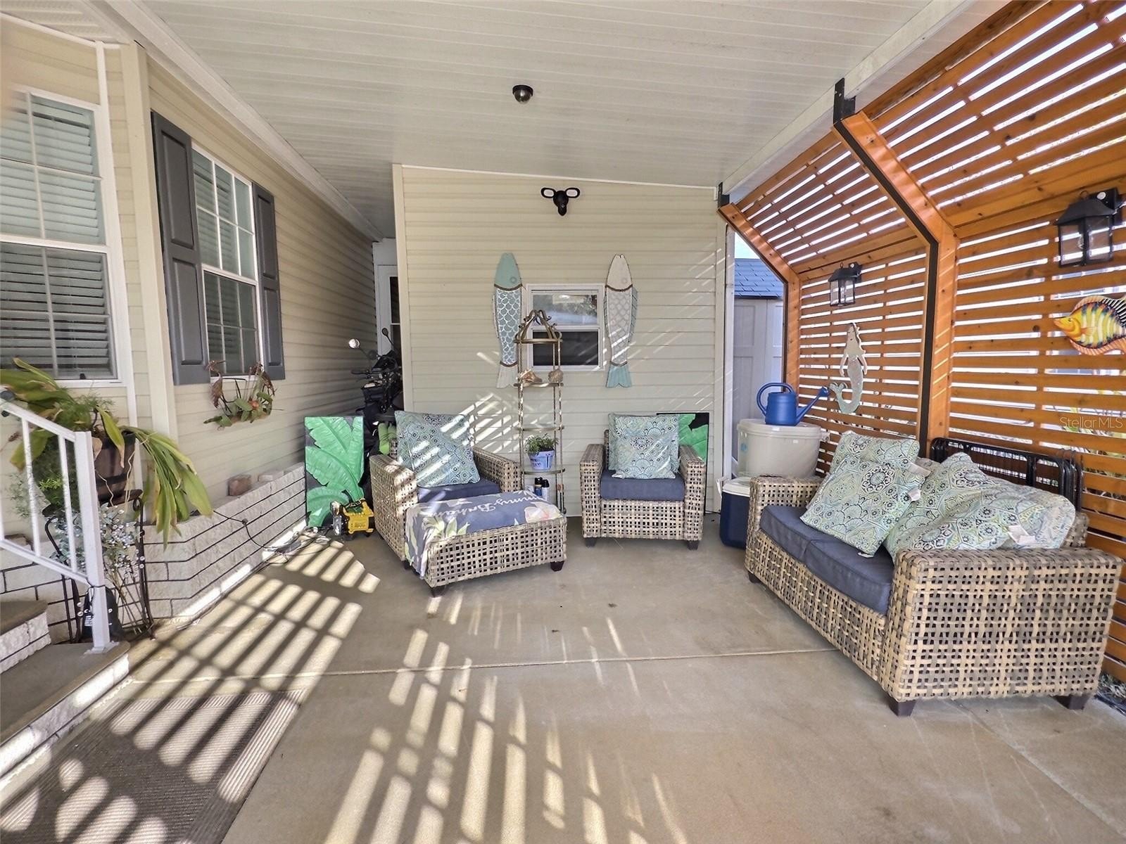 providing privacy and shade perfect for late afternoon dining. Outdoor storage area between