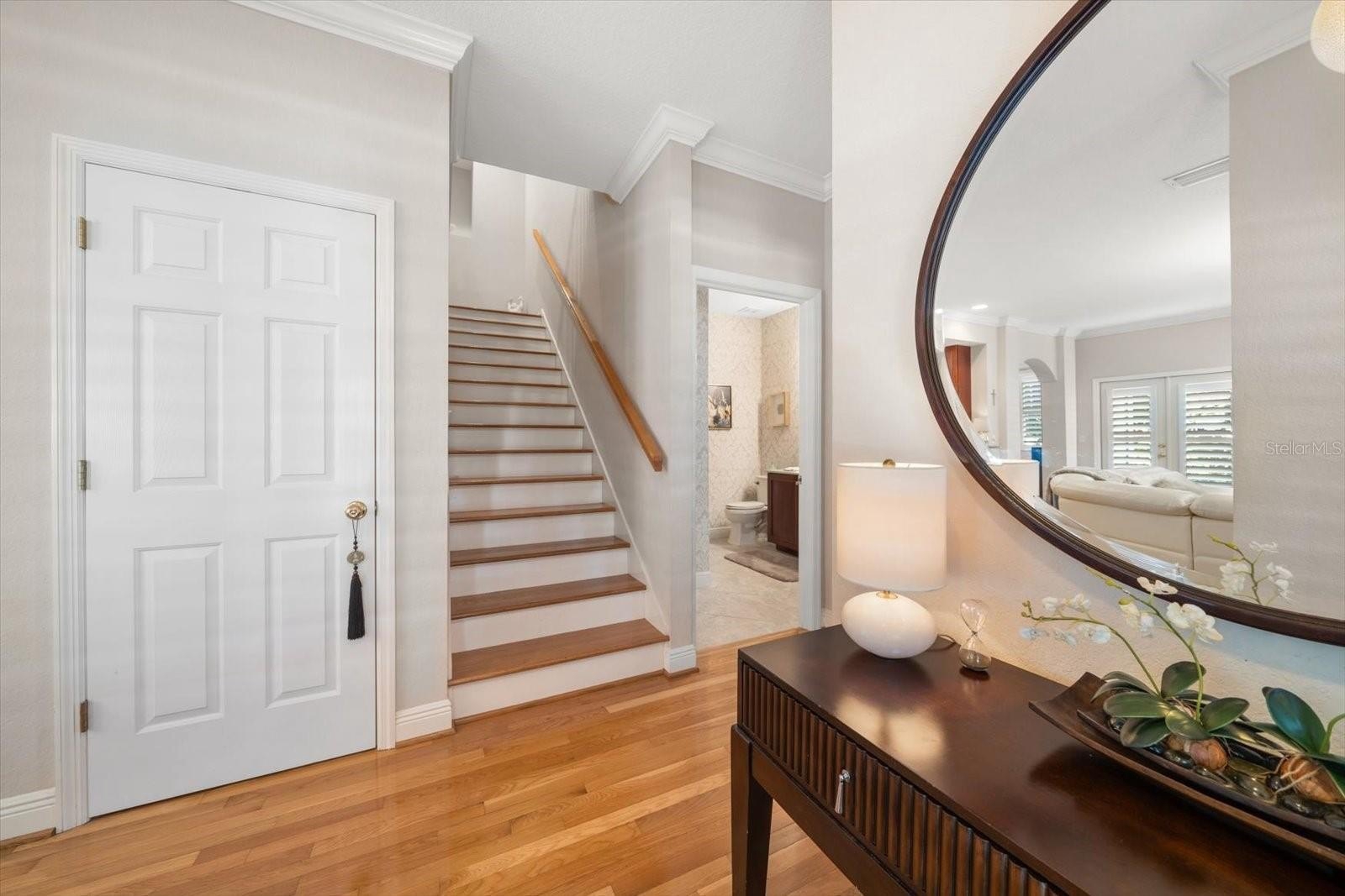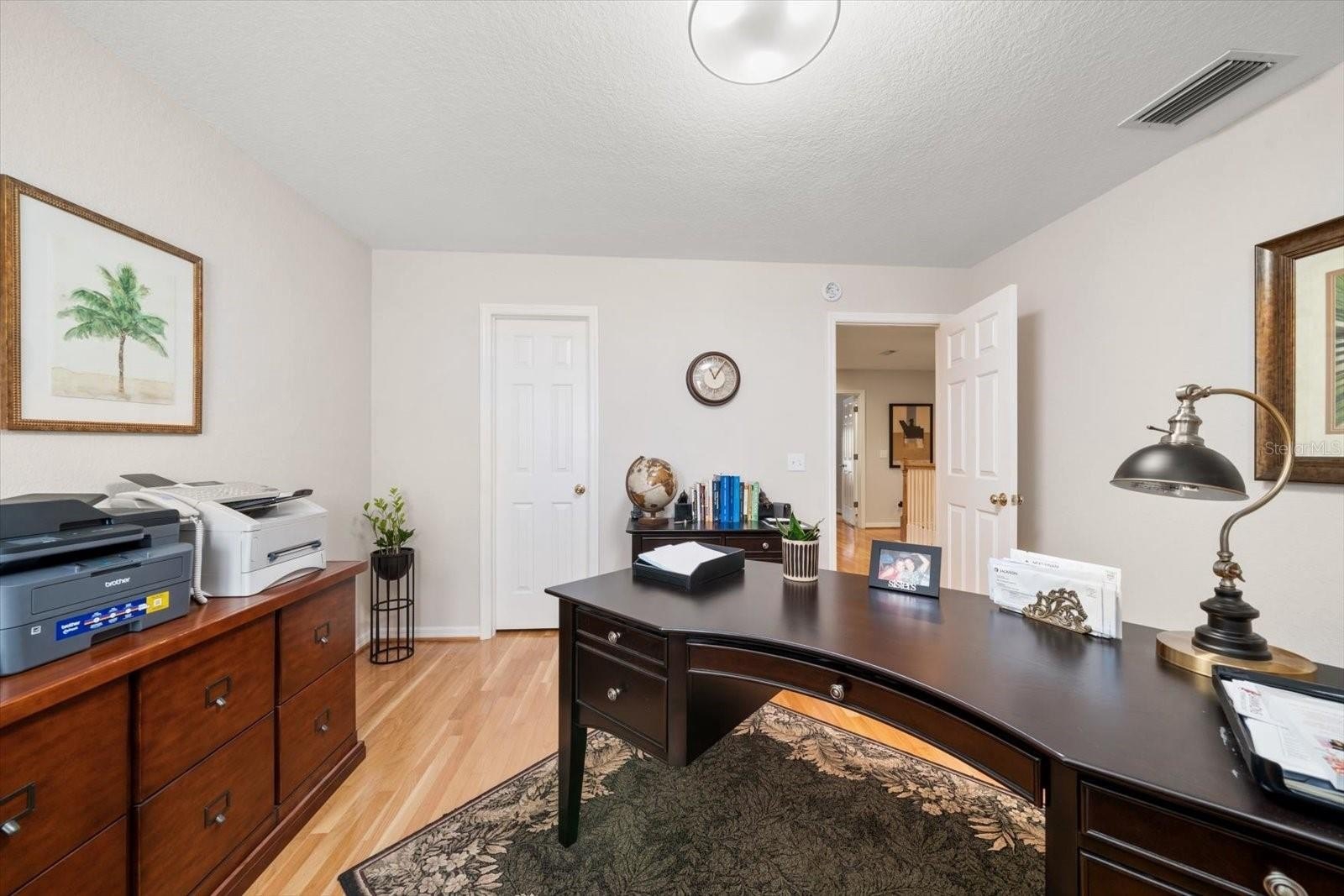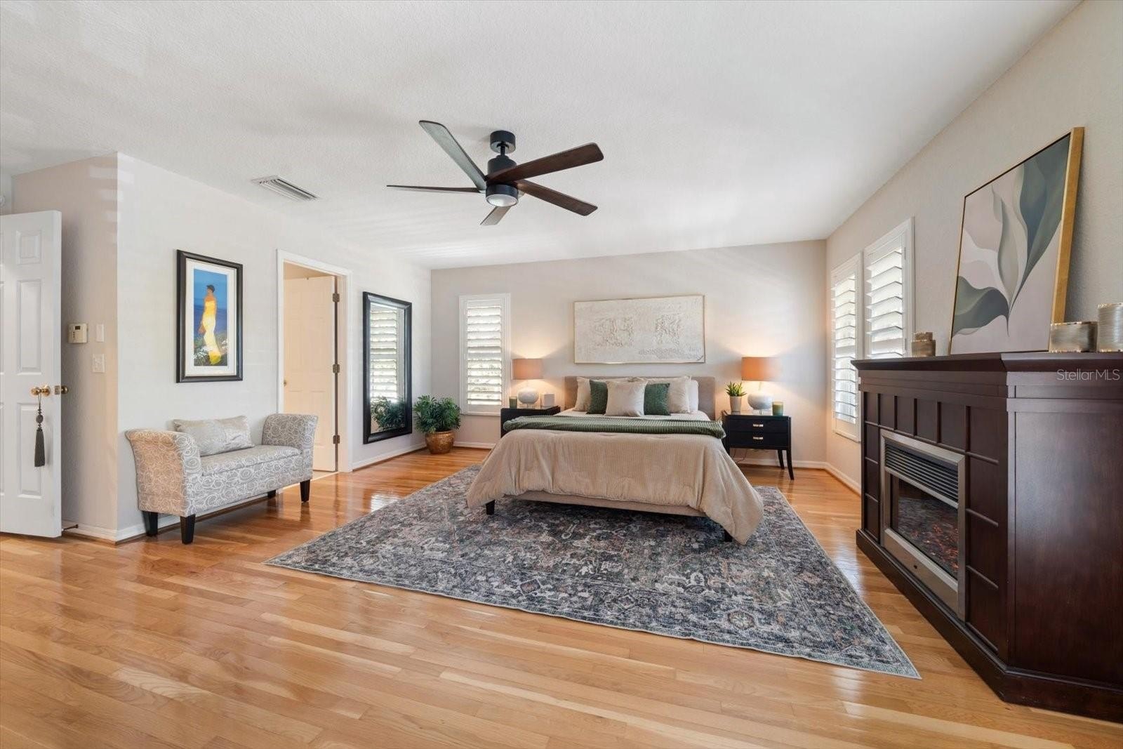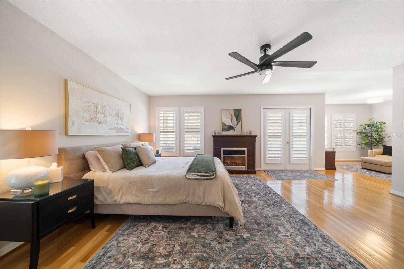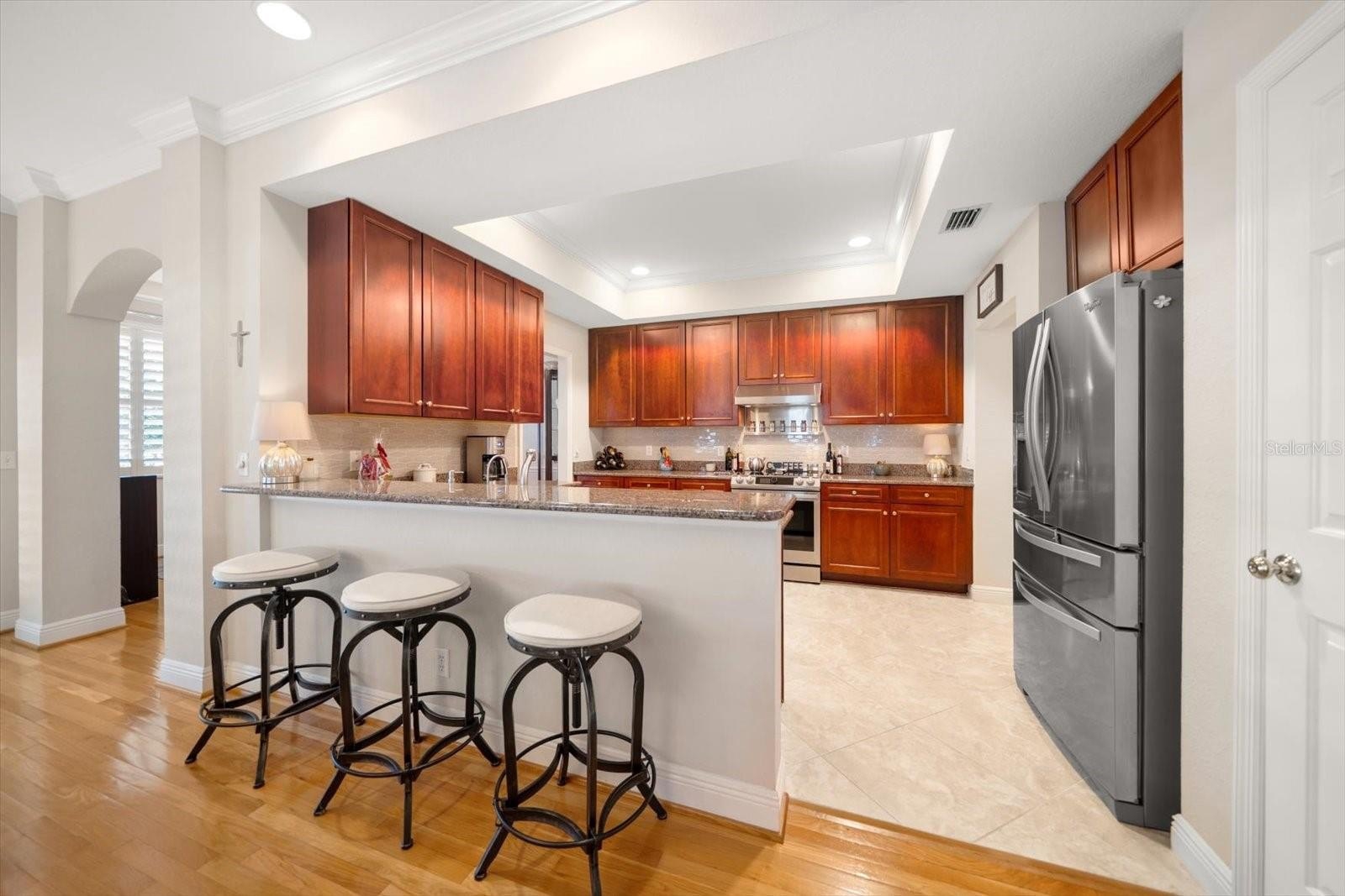 Welcome to West Bay Village, an upscale, pet friendly, executive townhome community in the heart of historical downtown Largo, with charming white picket fences, vintage streetlights, brick streets, and impeccably maintained landscaping. On the loveliest lot in the complex, with beautifully landscaped front, back and side yards, bordering on a tree lined community brick walkway, and with a direct view of Ulmer Park and gazebo, warmth and charm radiate from this lovely 4 bed /3 bath end unit townhome, originally the builder’s model unit for the complex. Enter through the front gate of the white picket fence, up the brick walkway, through the large, beautifully landscaped yard on an oversized premium lot, into the foyer, and into the large open living room with a gorgeous fireplace, crown molding, 9’ ceilings. Featuring glowing hardwood floors throughout the entire home, tile floors in kitchen and baths. Plantation shutters throughout, lots of windows and lovely French doors to the front porch and balcony welcome an abundance of natural light. The kitchen is a chef’s delight, with granite counters, tile backsplash, tiered breakfast bar with 42” wood cabinets, crown molding and a walk-in pantry, a closet pantry, as well as under stair storage pantry. The dining room is generously sized, with an abundance of natural light. Adjacent to the kitchen, the laundry room is spacious, with a custom glass entry door, built in cabinetry, and utility sink. A large 4th bedroom on the first floor is convenient for guests, or for use as a den or office, and boasts plantation shutters, a large walk-in closet, brick backyard patio, and private entrance and door adjoining the full bath with a walk-in shower. Upstairs, a split plan, enter through double doors into the enormous master suite which has a huge walk-in closet, plantation shutters, and a sumptuous, cozy sitting room, and French doors leading to a lovely balcony. The spacious master en suite, features a garden tub with separate shower, separate water closet, dual sinks and vanity area, and wood cabinets. On the other side of the landing there are two other spacious bedrooms with large walk-in closets. The two bedrooms share a full bath in the hall, with a walk-in shower, and wood cabinetry. This home has an abundance of storage space and an enormous oversized 2-car garage with plenty of room for a workbench, bicycles, or other toys. Walk out the front door to Ulmer Park directly across the street for farmers markets, concerts and special events. Centrally located, minutes away from dining, shopping, Publix, movie theatres, post office, hospitals, the Pinellas Trail, airports, Largo’s very own Largo Central Park, Central Park Performing Arts Center, volleyball courts, skate park, and walking trails. Mildred Helms Elementary, Largo Middle School and Largo High School are a short walking distance. Coming soon, the new Largo Entertainment District is also just a couple of blocks away with the new Horizon West Bay, a new modern City Hall with street level shops and restaurants, and the Liberty Yards retail and restaurants. Just a 5-minute drive over the Belleair Bridge, you’ll find charming beach towns with vibrant restaurants, diverse shopping, stunning sandy beaches and the enchanting turquoise waters of the Gulf of America. A must see, you will feel like you’re already home. NOT in a FLOOD ZONE, home elevation is 73’ above sea level.