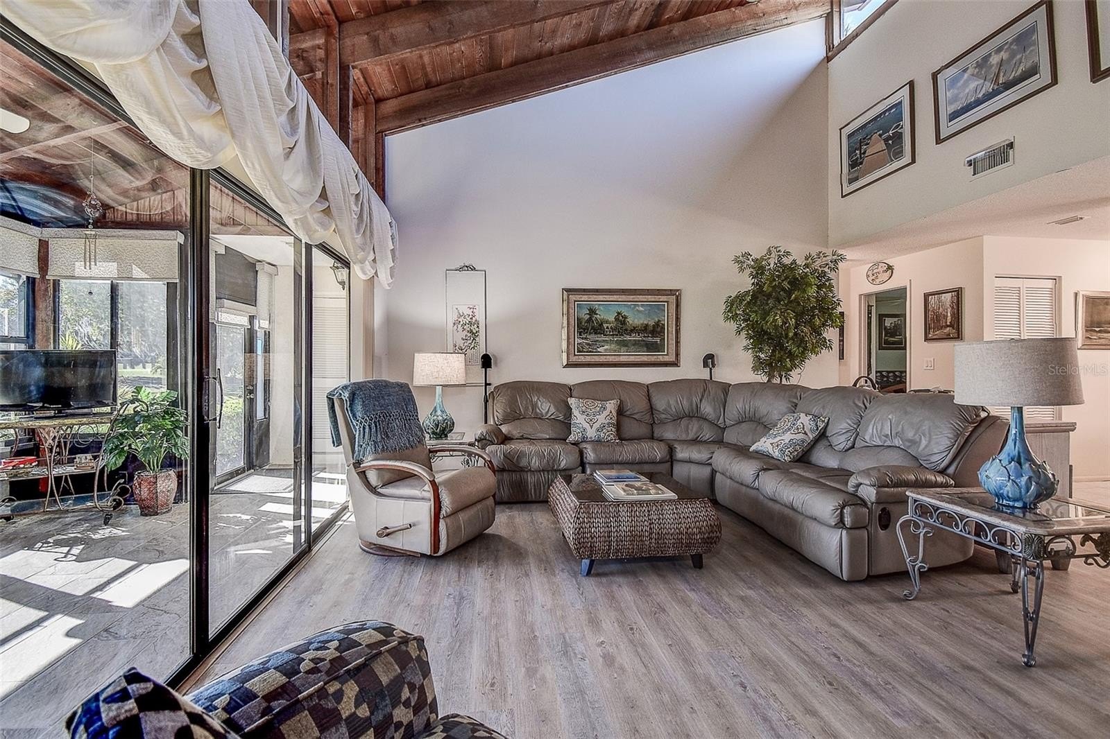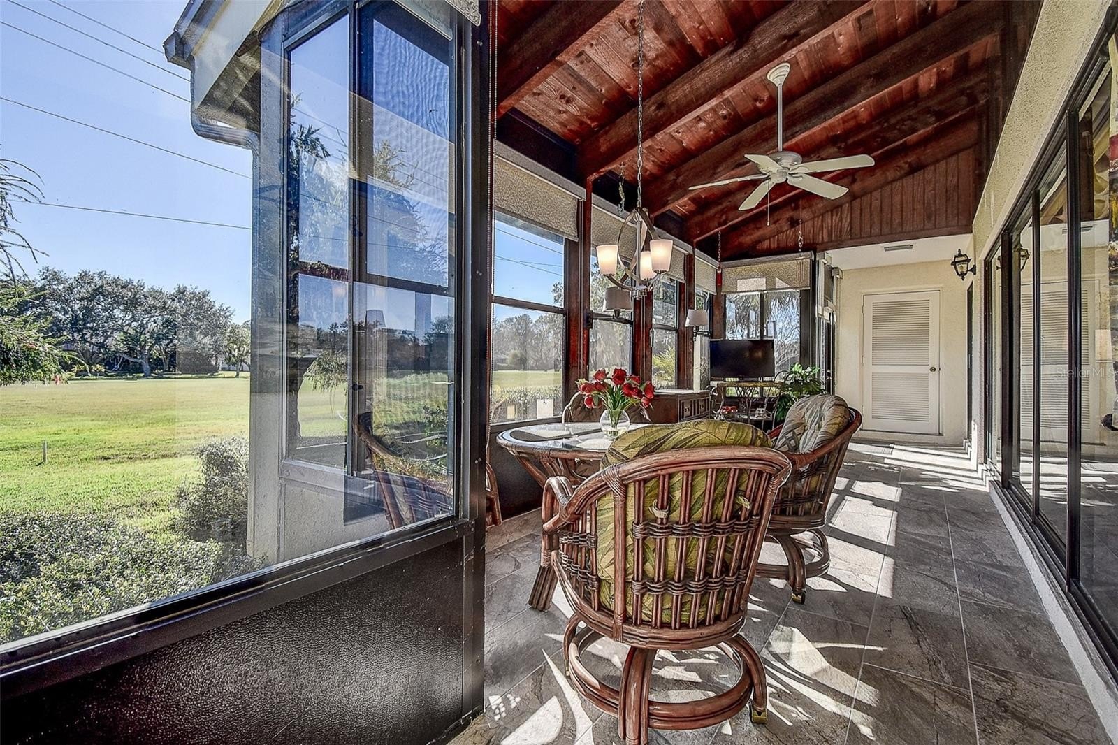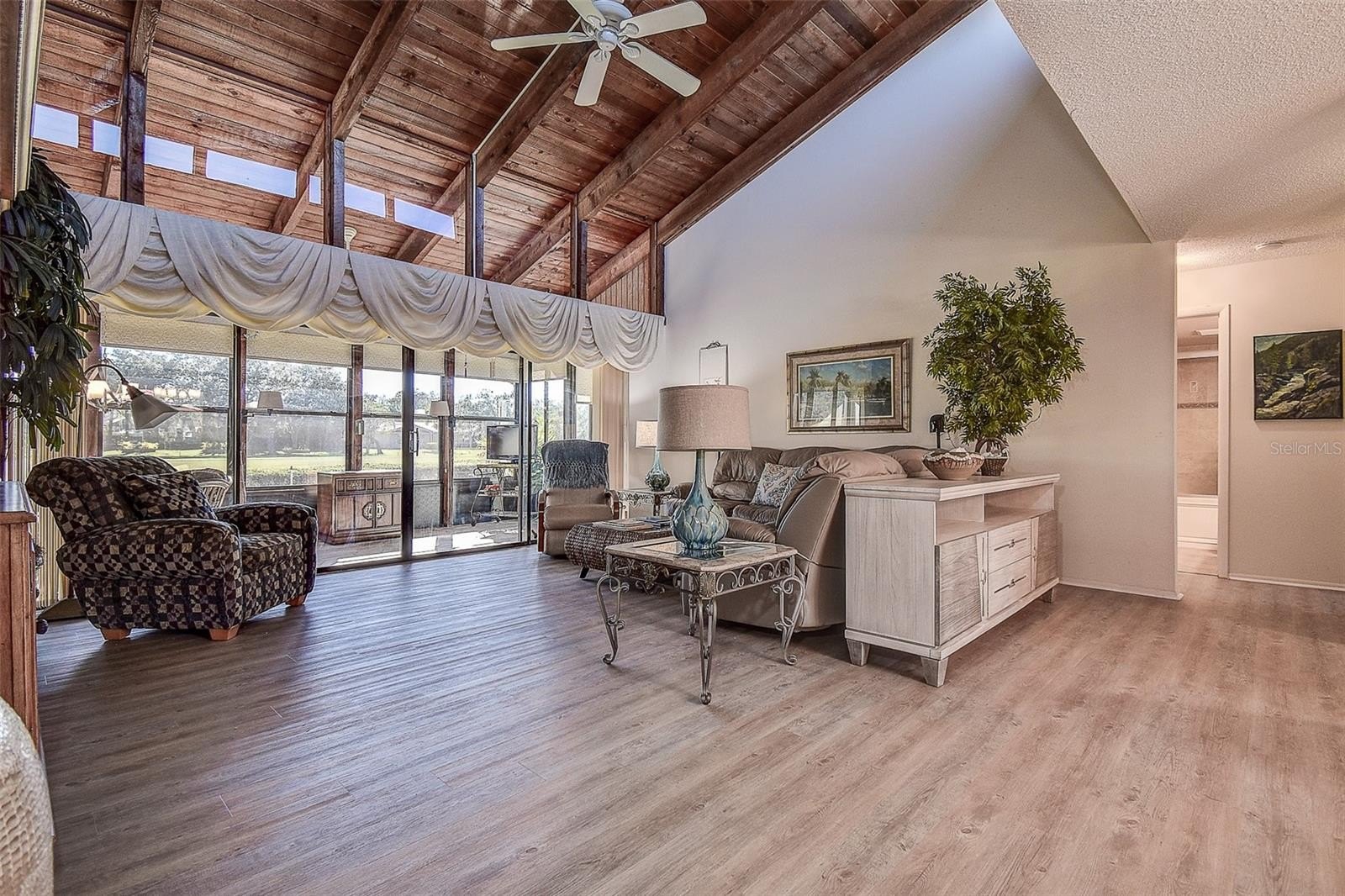 TURN KEY VILLA perfect for Snow Birds, nestled in the GATED COMMUNITY of East Lake Woodlands! 3 BEDROOM 2 Bath END UNIT VILLA with GOLF COURSE VIEWS! BONUS SUN ROOM adds 290sqft for a total 1735sqft living! FURNISHED and completely MOVE-IN READY, including dishes, pots, pans, furniture, TVs, towels and beach chairs!! And it’s even in Zone X with NO FLOOD INSURANCE REQUIRED. Step through the front door of this charming villa and you will love the OPEN CONCEPT floorplan, SOARING VAULTED CEILING with wood planks & beams that run right into your huge Florida room/lanai at the rear of the home, which runs the full width of the house & gives you some nice, green GOLF COURSE VIEWS! BRAND NEW LUXURY VINYL PLANK flooring in main living areas. The transom windows provide MAXIMUM NATURAL LIGHT! Enjoy cooking and entertaining with a Well-Equipped Kitchen complete with STAINLESS STEEL APPLIANCES (Brand New Refrigerator), plenty of cabinets and countertops, TILE BACKSPLASH, pantry and washer/dryer closet. Step outside your eat-in area slider to your private patio, the perfect place for grilling. You’ll love the split bedroom plan. The spacious Primary suite has sliders to the Florida room plus a LARGE WALK-IN CLOSET! The updated EN SUITE bathroom offers plentiful cabinets, GRANITE COUNTERS, dual sinks, & glass enclosed step-in shower with updated tile! On the opposite side of the home the GUEST BATHROOM has also been UPDATED and is flanked by two bedrooms, one with access to the Florida room, and one which doubles as a HOME OFFICE with new built-in cabinet/desk and Daybed! So many updates - ALL NEW IN 2024!! - New Roof 2024, New Downspouts/Gutters, New water heater, New Office bookcase and desk wall unit, New tile on lanai, New window tinting film in living room & lanai, new insulation on lanai roof, many new lights and solar light tube in primary bedroom, new portable gas generator. New HVAC 2019 PLUS New Ductwork and New Attic Insulation installed 2024. Plus Home Warranty! The incredibly large Florida room is great for flex space and adds additional square footage not included in the tax records with glass windows, added insulation, completely air-conditioned, new tile floors, ceiling fans and storage closet. The light-filled room offers private tropical views with no rear neighbors and the wildlife that’s in abundance in ELW. You can feel comfortable knowing that this gated community has a ROVING PATROL SECURITY at all times. This is a GOLF CART FRIENDLY community, handy to run over to the nearby shopping plaza for some of your everyday needs. Quail Forest is a PET FRIENDLY community. You have an assigned, COVERED PARKING SPACE just outside your front door, along with another guest parking space. Optionally, you could join the renovated Ardea (formerly East Lake Woodlands) Country Club with membership plans that include private Clubhouse, 2 Championship 18 hole golf courses, 2 heated pools, putting greens, Tennis and Pickleball, Fitness Center, Club restaurant and Social Events. HOA fees cover the Quail Forest’s own Sparkling, Heated COMMUNITY POOL JUST STEPS AWAY, Building Exterior including Roof, Lawn Maintenance and Irrigation, Basic Cable and Trash Pick-up. Minutes away from Westfield Countryside Mall, award-winning beaches of Honeymoon and Caladesi Islands, along with parks, bike trails, dog parks, playgrounds, restaurants and entertainment. PLUS, we will leave the furniture...totally turnkey!! Schedule your private showing today.