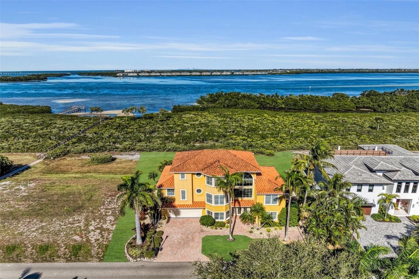 REFINED LIVING FOR A LIFE WELL LIVED Located within a private gated community, this exceptional residence offers a spectacular bay view coupled with direct easy access to a deep-water marina and a private dock Boaters will Love. Thoughtfully designed with high-end appointments throughout, the home combines refined finishes with comfortable, functional living across three levels, all accessible by a private elevator. The kitchen is a standout feature, designed to satisfy even the most discerning chef, with premium Wolf appliances, generous workspace, a full size wine cooler, over sized center island and a seamless flow to the main living and entertaining areas. Expansive windows capture stunning bay views that welcome the Sunrise every morning while multiple living spaces provide flexibility for everyday living and hosting guests. Outdoor living is equally impressive, featuring a veranda with seating for 12, a luxurious heated salt water pool and spa all set in a private, resort-style setting. Additional Features Include: A cozy fireplace the perfect place to snuggle up with that special someone, the safety of a whole house generator for unexpected circumstances, first floor spaces ideal for a gym to keep fit, a man cave so you never miss the Big game, or a craft area for the more creative partner of the home. Located just 1 mile (walking distance) from the pristine beaches of Anna Maria Island where you'll find sun, surf and spectacular sunsets. This beautifully appointed home offers the security of gated living, the convenience of elevator access, and the rare combination of panoramic water views and deep-water boating—delivering an exceptional coastal lifestyle. Call for an appointment today and start enjoying a life well lived!