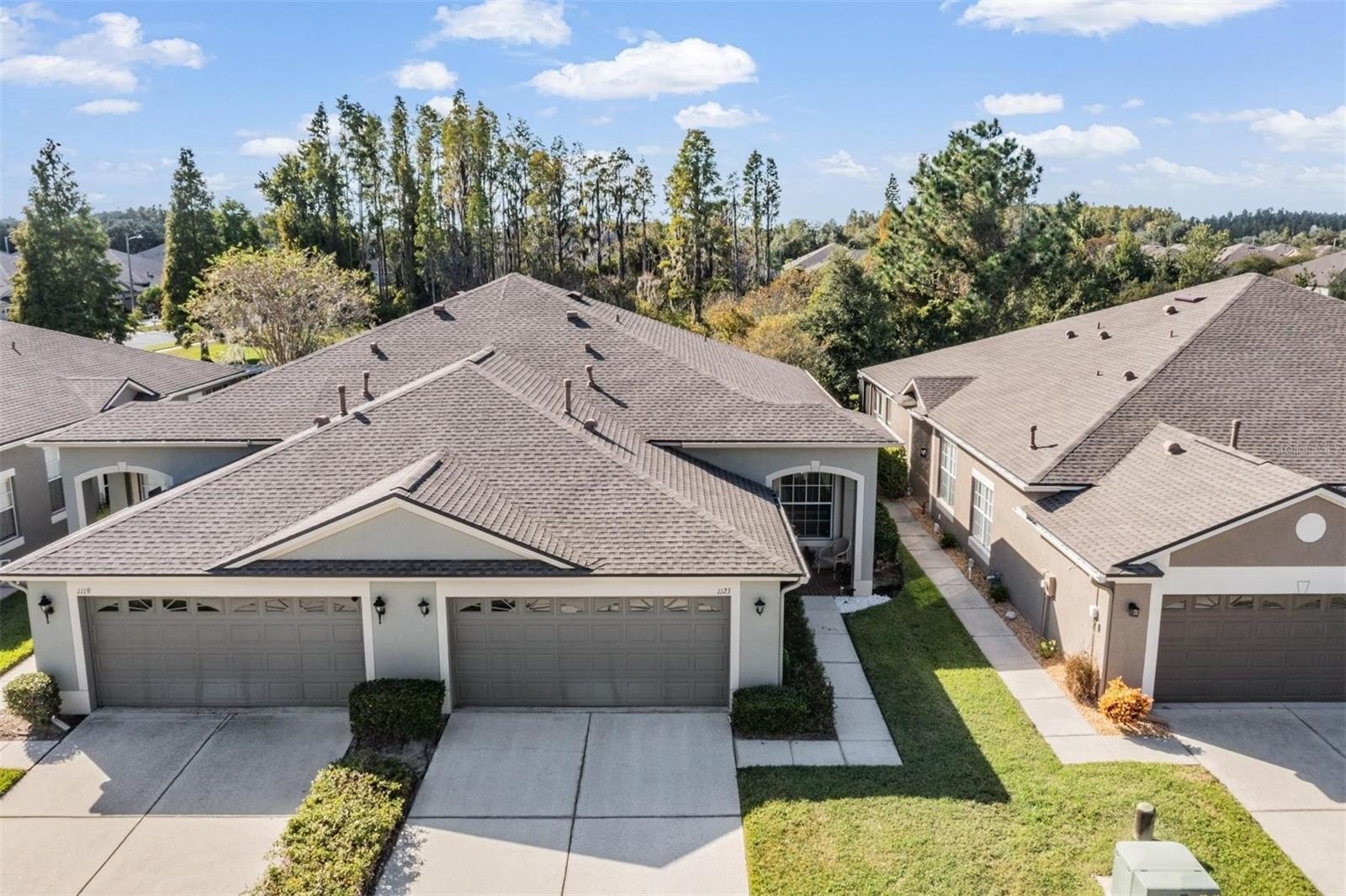 Welcome to this beautifully maintained SINGLE-STORY villa located in the GATED Larkenheath community within the highly sought-after Meadow Pointe neighborhood of Wesley Chapel. Designed for comfort and convenience, this home offers the perfect balance of functionality, style, and MAINTENANCE-FREE living in a serene setting.