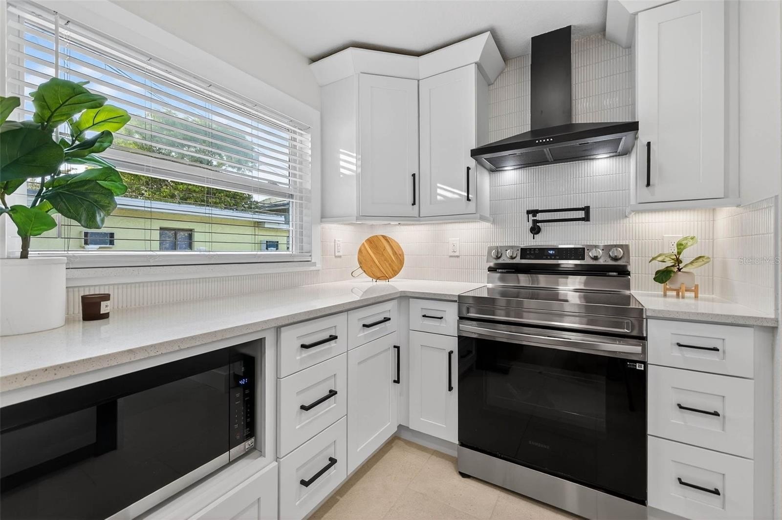 This home has been meticulously updated while maintaining the charm of these gorgeous bungalows. Tray ceilings and original hardwood floors are show stoppers! The heart of the home is the new modern kitchen -- is a true standout: new soft close cabinets, waterfall stone countertops, modern backsplash, stainless steel appliances, and the large island makes hosting a breeze. Custom coffee bar for added storage is the cherry on top for java lovers! The layout flows so easily and masterfully utilizes every inch of the home that it feels closer to 1500 square feet of living space. The large living room has wonderful natural light and flows beautifully into the rest of the home.