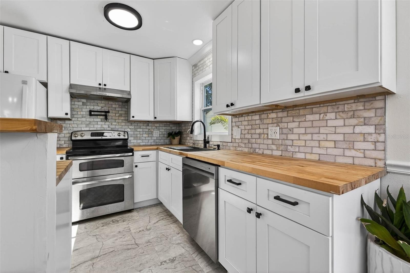 Inside, the home is warm, welcoming, and thoughtfully updated. The new kitchen is a standout with butcher block countertops, a marble backsplash, double oven, dishwasher, and an eat-in island that’s perfect for easy conversation while cooking or hosting friends. LVP flooring runs throughout, giving the home a clean, cohesive feel.