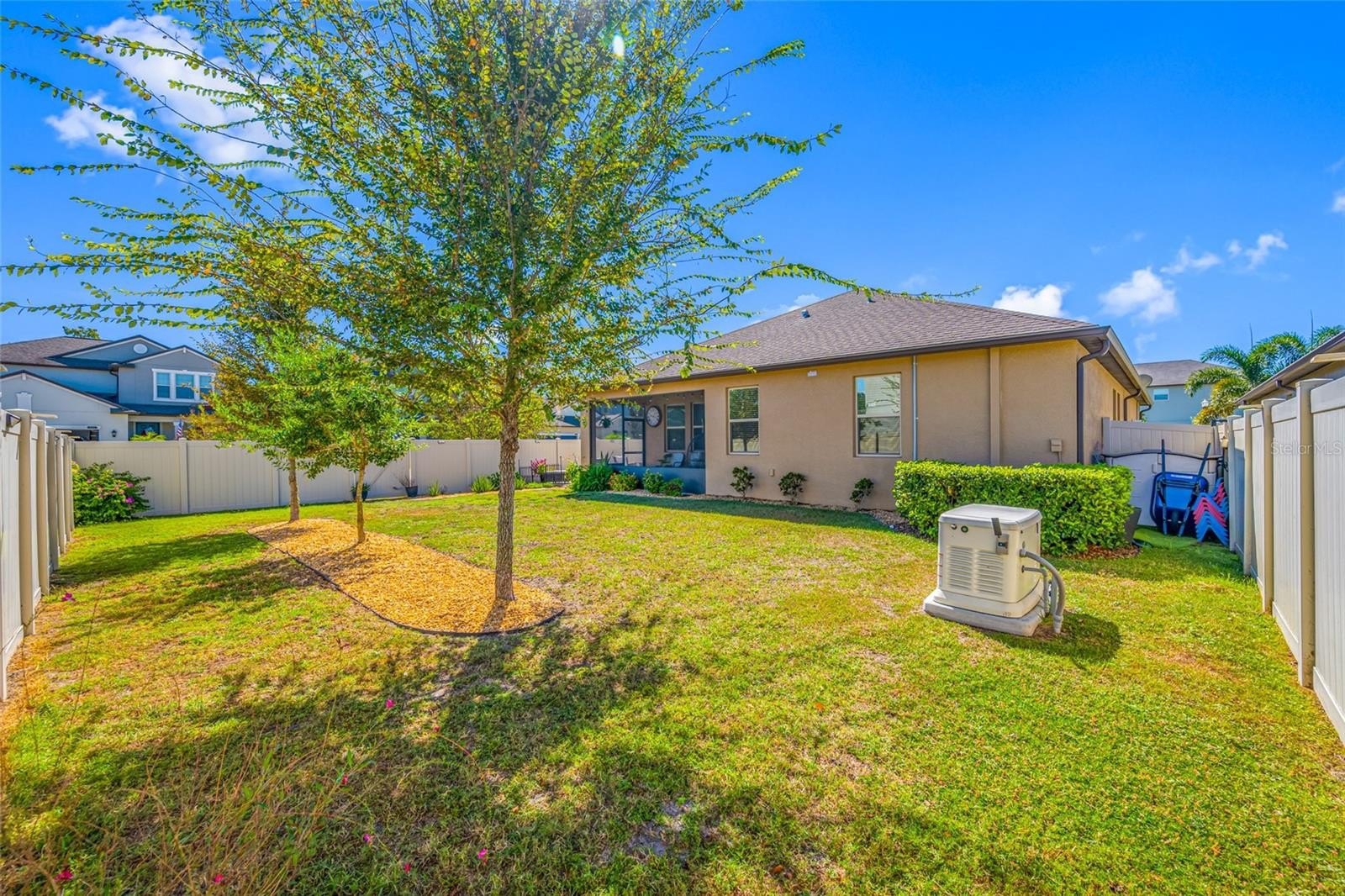 Welcome to your dream home in the heart of Land O' Lakes! This beautifully updated 4-bedroom, 3-bath home sits on a spacious corner lot with lush, low-maintenance landscaping—including mature palms that add a touch of tropical charm. Freshly painted and move-in ready, this home features stylish new barnwood-look flooring in the bedrooms and a thoughtfully designed triple-split floorplan for maximum comfort and privacy. The spacious primary suite overlooks the peaceful backyard and boasts a luxurious 13-ft deep walk-in closet, plus a private en suite bath with dual vanities, a relaxing soaking tub, and a separate walk-in shower. Two generously sized bedrooms are located at the front of the home, with a fourth bedroom just off the kitchen—perfect for guests or a home office. At the heart of the home is the open-concept kitchen and living space, complete with granite countertops, tile flooring, a large pantry, and abundant cabinet space. The combined living and dining area offers plenty of room for entertaining, and ceiling fans are installed in all bedrooms and the living room for year-round comfort. You’ll also appreciate the convenient dual access laundry room—easily reached from both the kitchen and primary bedroom. Step outside to your own private backyard oasis, featuring a large screened-in lanai, a spacious patio area perfect for outdoor seating or grilling, and a fully fenced-in yard—ideal for relaxing, entertaining, or letting pets play safely. For added peace of mind, the home includes a fully automated whole house natural gas generator, so you're always prepared. Located in the sought-after master-planned community of Connerton, you’ll enjoy access to world-class amenities including a resort-style pool with water features, a lap pool, fitness centers, playgrounds, walking and biking trails, basketball and tennis courts, a fishing pier, and even a bike park. This golf cart-friendly community is designed for connection, recreation, and convenience—with future plans for a vibrant town center and four distinct villages surrounded by 1,800 acres of parks and protected natural areas. Don’t miss the opportunity to live in one of the most desirable communities in Land O’ Lakes. Schedule your private tour today!