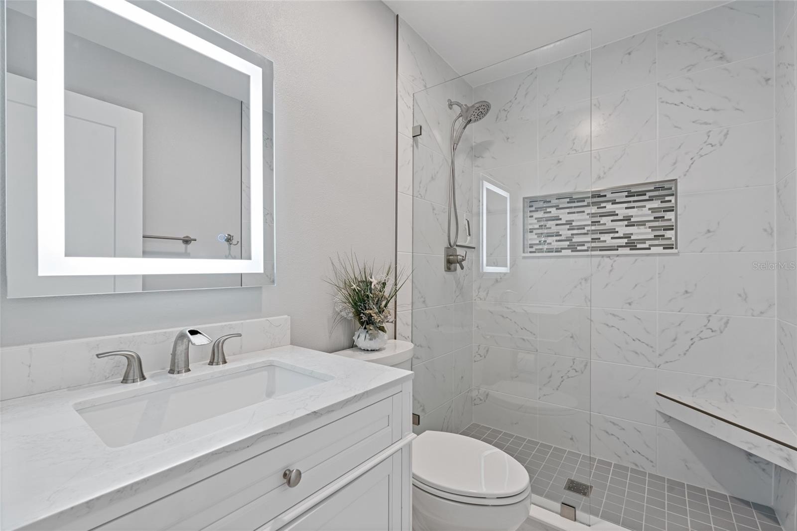 First floor includes a convenient half bath and full-size laundry closet with washer/dryer for everyday ease. Upstairs, the primary suite offers a peaceful retreat with a generous walk-in closet, easy-care luxury vinyl flooring with sound proof leveling subfloors , abundant natural light, and a beautifully updated ensuite bath with walk-in shower and modern vanity. Two additional bedrooms provide excellent flexibility for family, guests or a home office. A full bath with walk-in shower and a spacious hallway linen closet complete the upper level.