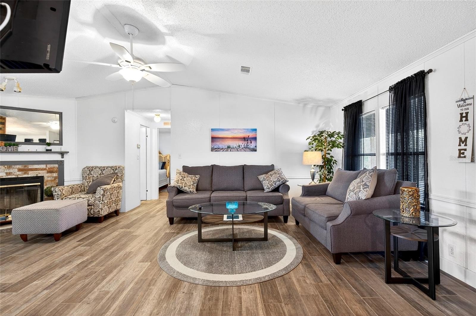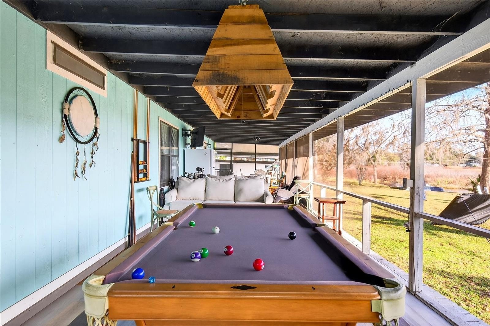 Functioning wood burning fireplace. Fully furnished with everything in the pictures! Decorative tile , appliances are less than 5 years old. Kitchen has a dishwasher, pantry, microwave, solid wood cabinets. HUGE 52x8 back porch/Florida Room conplete with TV & 8' Pool Table, Couches, Refrigerator, storage and more!! -----Theres so many great things to see. Schedule a showing now and we will throw in a Riding Lawnmower :)