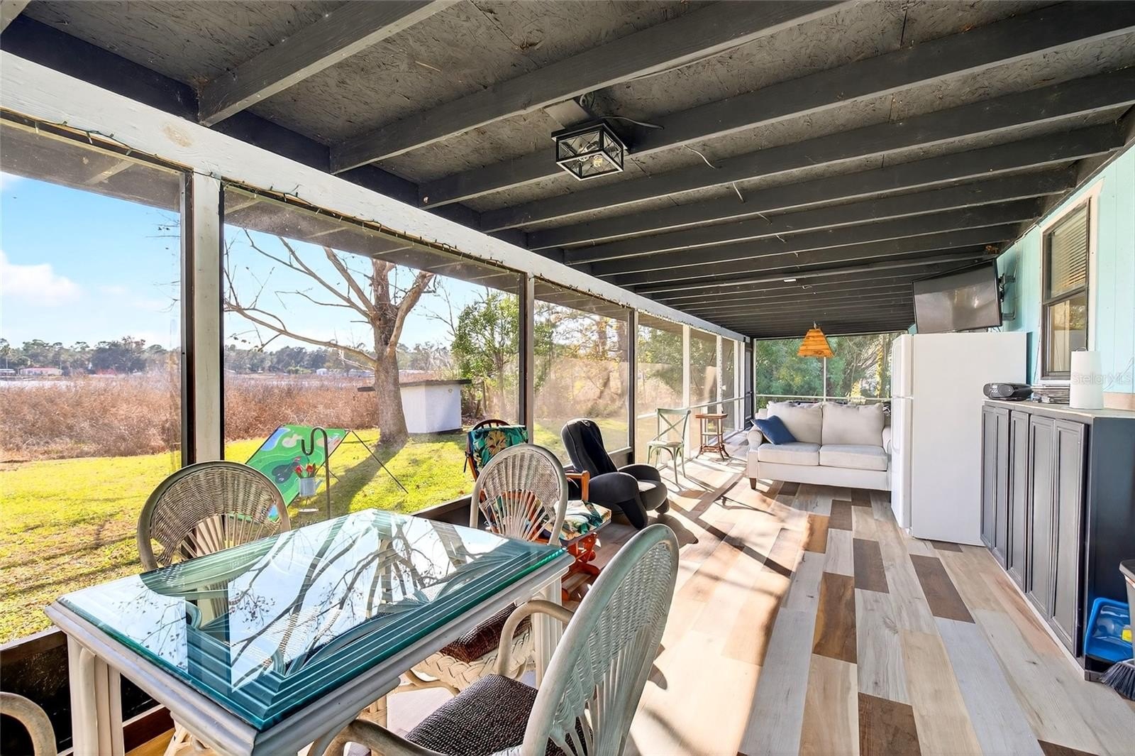 --EXTERIOR UPDATES: Full Exterior Paint. Paint & Wood on front & back porches, wheelchair accessible ramp, back steps with Railing & Fishing Dock. New Luxury Vinyl flooring in Back Porch. New Screens for entire back porch/Florida Room--INTERIOR UPDATES: Full Interior Paint & new baseboards. New Tile & flooring throughout, new toilets. Entire kitchen remodeled. --BONUS FEATURES: Detached 1 car Garage with WORKSHOP & electric. Covered carport, covered BBQ area, side porch with concrete slab.