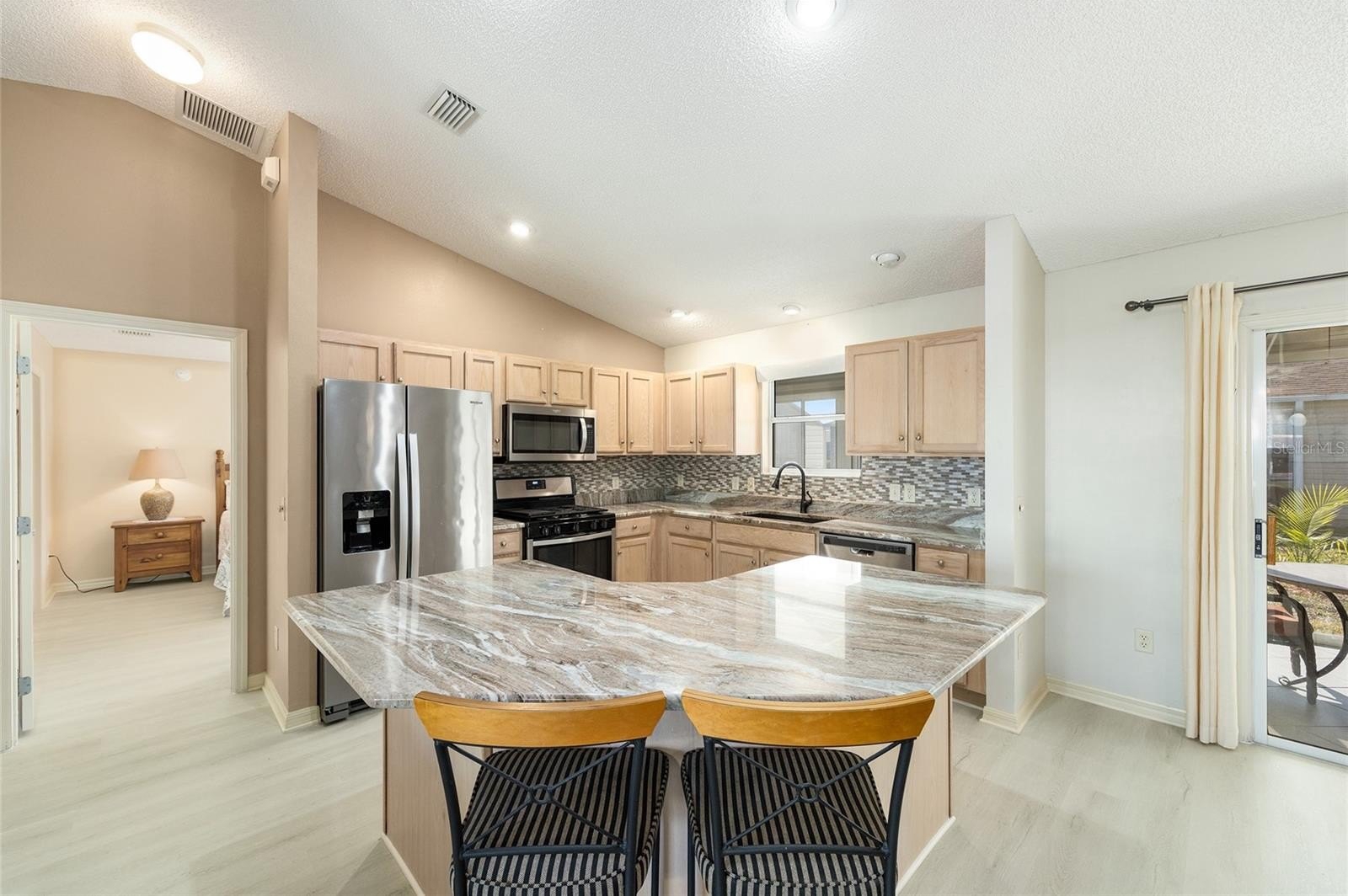 Step inside to find NEW LVP FLOORING THROUGHOUT the main living areas, GRANITE COUNTERTOPS THROUGHOUT, and a bright, inviting space perfect for entertaining or relaxing. The UPDATED KITCHEN IN 2018 features GRANITE, TILED BACKSPLASH, a NEW FAUCET, an UNDERMOUNT SINK, STAINLESS STEEL APPLIANCES, GAS COOKING, and PULLOUT CABINET DRAWERS for added functionality.
