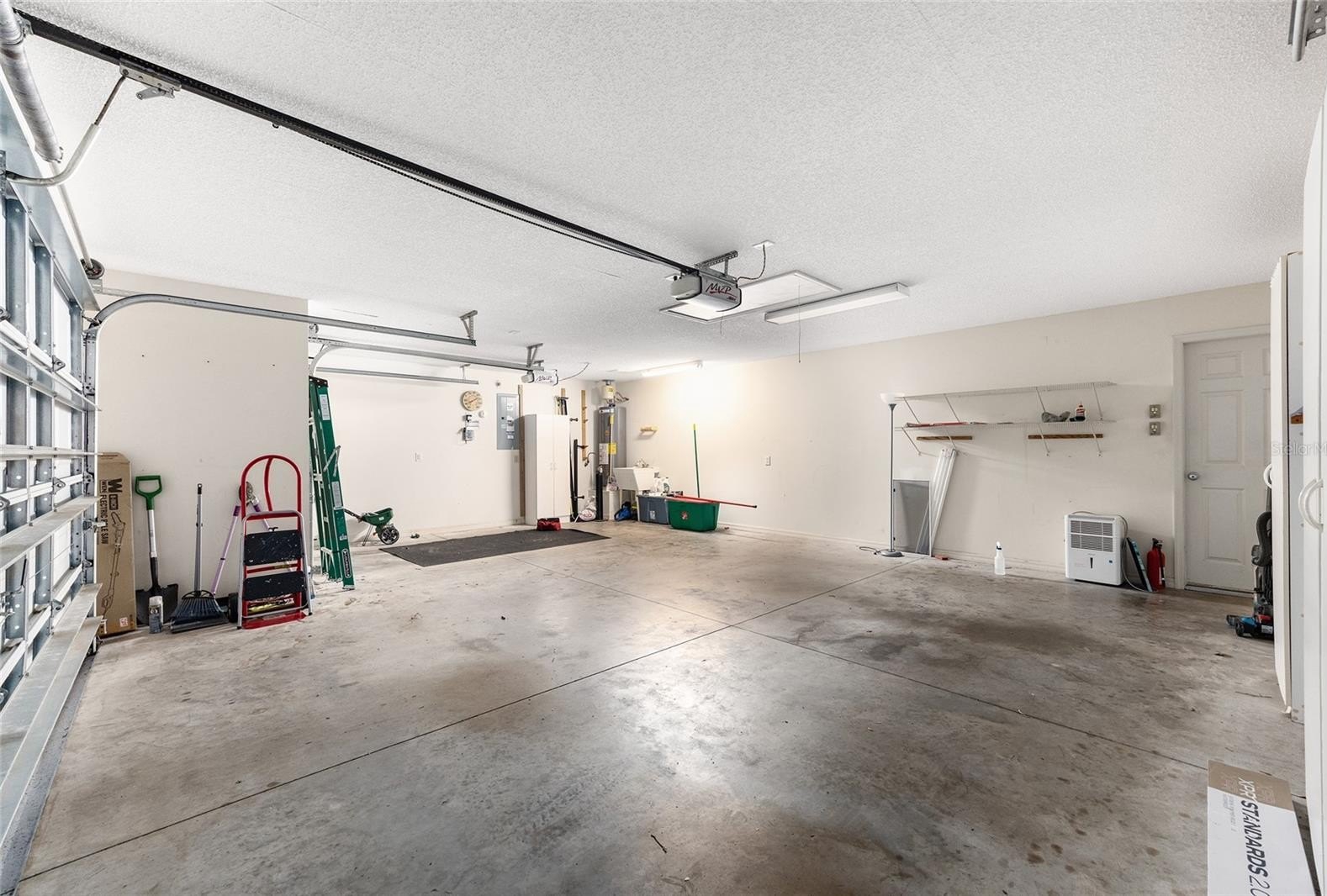 Practical features continue with ROOF 2020, HOT WATER HEATER 2018, A/C NEW COMPRESSOR 2024, GARAGE SINK, GARAGE CABINETS, PULL-DOWN ATTIC STAIRS, and a GOLF CART GARAGE for added storage and convenience, painted driveway and walkway.
