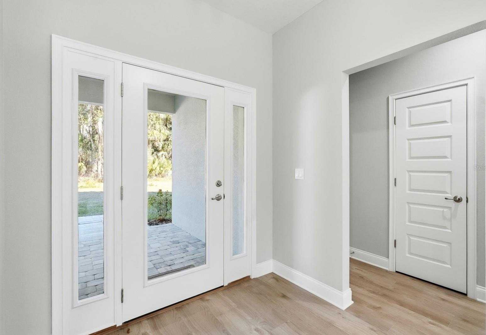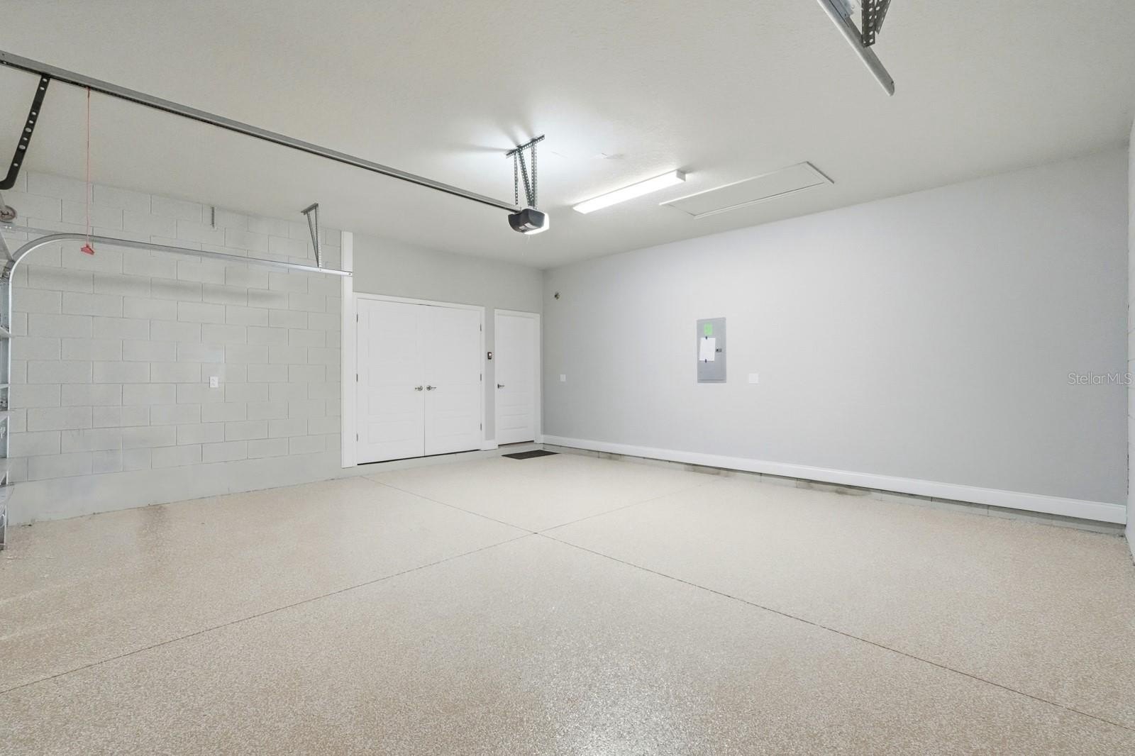 Step through the double doors to the covered lanai and enjoy a backyard that’s ready for Florida living, complete with a brand new fenced yard, an outdoor shower perfect after a beach day, and plenty of space for a pool. You’ll also appreciate the centrally located indoor laundry room and the 2-car garage (approx. 460 sq ft) featuring 13-foot ceilings, giving you extra storage space you rarely find in new construction.