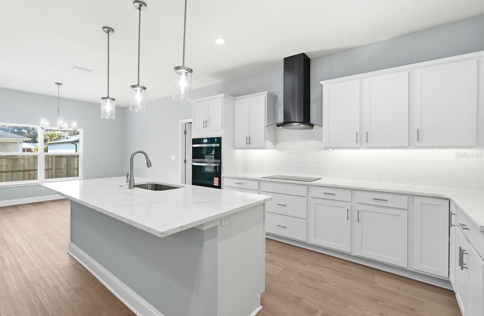The kitchen is the heart of the home and features a large island with breakfast bar seating, brand new high-end cabinets with soft-close drawers and doors, brand new appliances with a hood vent, and brand new countertops. The open-concept layout flows seamlessly into the dining and living areas, making it ideal for entertaining or everyday comfort.