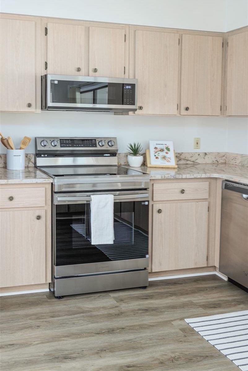 You’ll love the brand-new luxury vinyl plank flooring, professional fresh interior paint, new light fixtures and a stylishly updated kitchen featuring stunning granite countertops, a new stove, and a built-in microwave, along with a cozy breakfast nook.
