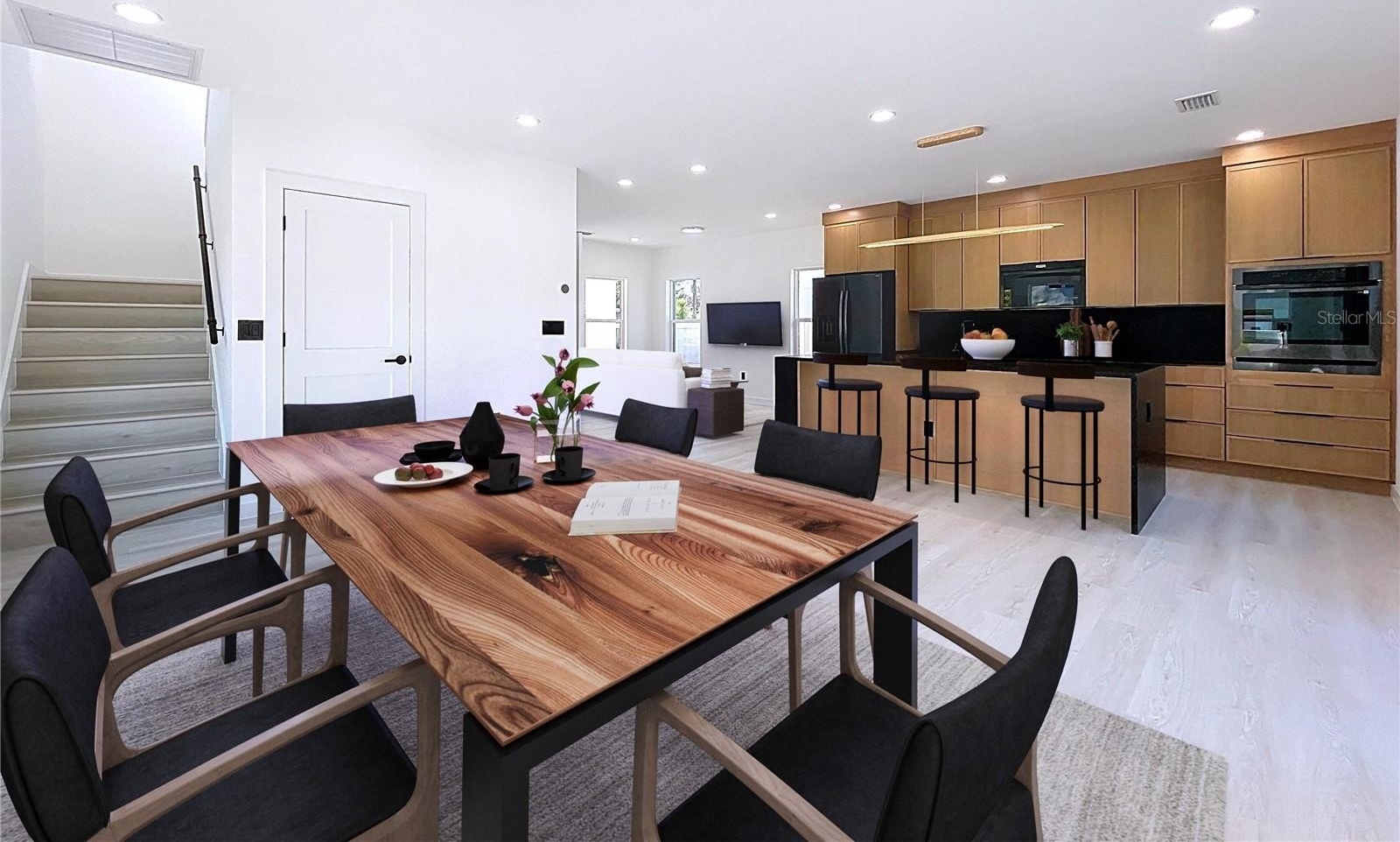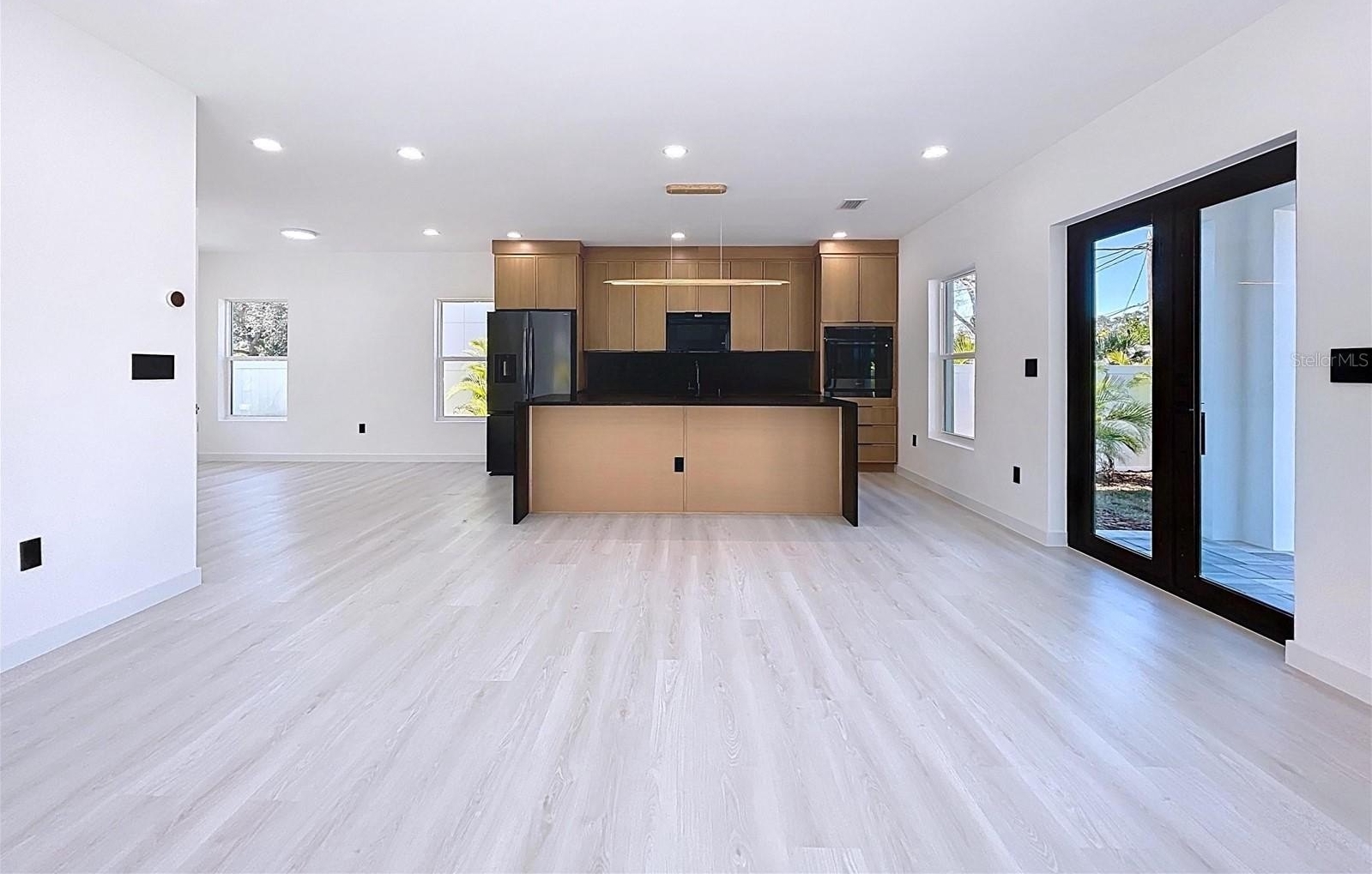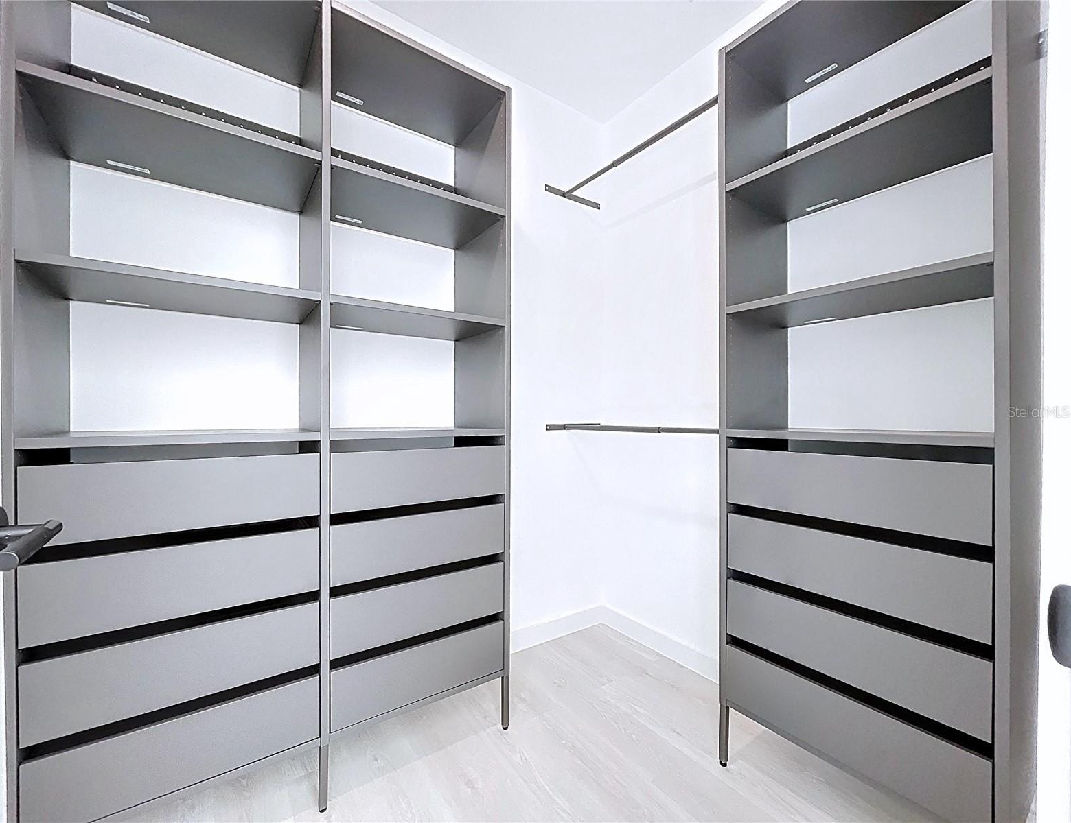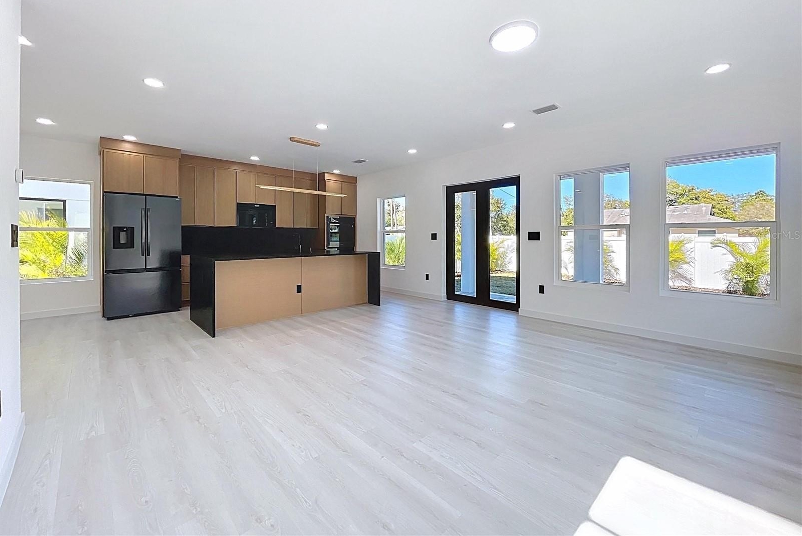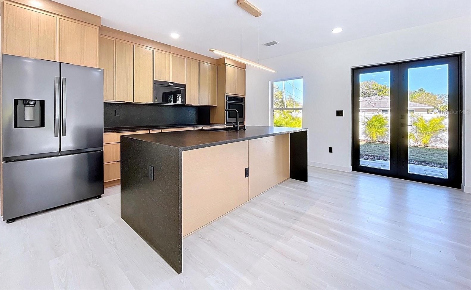 The kitchen has a modern and clean feel. There are solid wood cabinets up to the ceiling, soft-close drawers, and plenty of storage and motion activated under cabinets lights. The microwave is built in flush with cabinets, built-in wall oven with an induction cooktop, which keeps the kitchen looking neat. Everything is set up for convenience, not just for show. All appliances and ventless washer/dryer combo come with 5 years warranty.