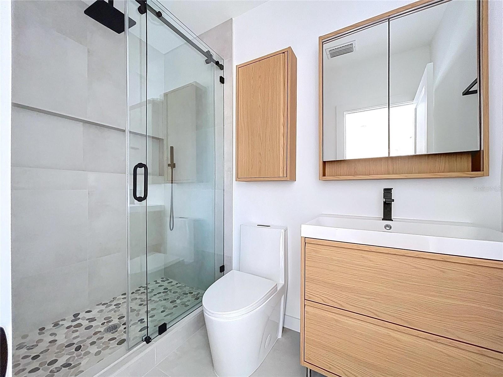 Upstairs are the three bedrooms, and each one has its own bathroom. That’s a big deal. It means everyone gets their own space and privacy, and it makes mornings and evenings easier for multi generational families. Bathrooms also have much more storage space than you usually see and motion activated under vanities lights.
