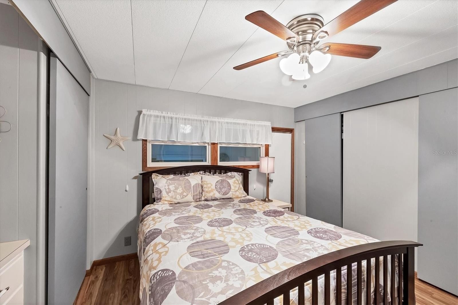 Welcome to Tidevue Estates, a land-owned, active 55+ community! This rarely available one-car garage home with workshop and extra storage sits on a concrete slab. Truly move-in ready and turn-key furnished, this home has been thoughtfully updated throughout. Enjoy peace of mind with a brand-new roof (2024), all new windows, A/C replaced in 2022, and water heater updated in 2016. The updated kitchen features all-new cabinets, a refrigerator and stove (2019), plus two refrigerators with ice makers. The bright and spacious living room is perfect for entertaining. Laminate flooring flows throughout the home, and the primary bathroom has been updated with a walk-in shower. The second bedroom has its own private entrance so when guests come to visit they can just go right out for their monrning run/walk. Relax on the epoxy-coated front porch (2020) and watch the world go by. Enjoy the Florida sunshine on the open patio perfect for grilling out. Newer washer and dryer included. Conveniently located within walking distance to the recreational center and pool—Florida living at its best! Low HOA of only $600 annually. Pets are not permitted. Plenty of activities to keep you busy in this community. Take a water aerobics class in the solar-heated community pool or work on your tan. The community library has free WI-FI connection. Updated fitness center. Meet friends and make new ones for a game of indoor pickleball, bocce ball, or shuffleboard. Join the Golf League. Take a bike or golf cart ride to Veteran's Park to watch the wildlife and sunset. Ellenton Premium Outlet Mall, restaurants, and medical facilities are just minutes away. Easy access to I-75. Not to mention a short drive to our beautiful Gulf Beaches.