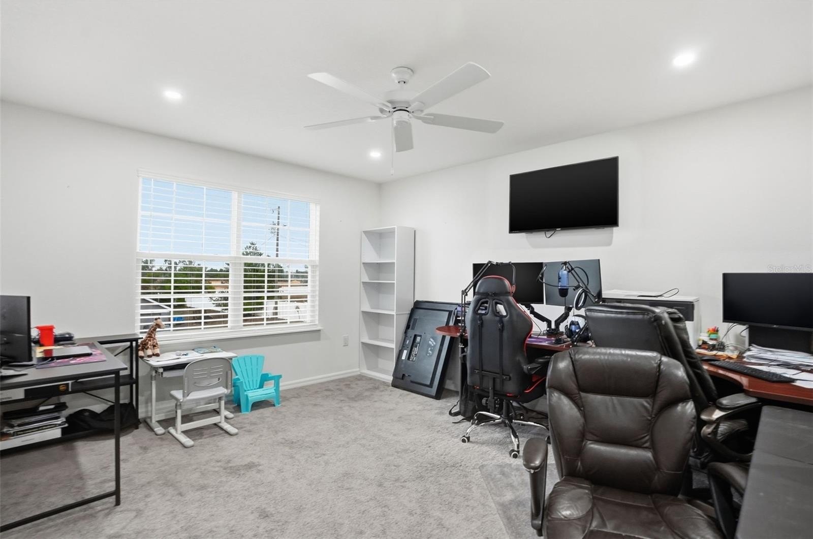 STUNNING NEWER VERY LARGE 5-bed, 4.5 bath, 2-car, 2-STORY HOME + large detached metal building (30x30) + corner 1/2 acre lot + fenced yard!! Built in 2022 - so everything is NEWER!! 3.099 sq feet living space; 3,925 total space + 900 sq feet inside the metal building with AC; 1049 total. 5 bedrooms + 4 full bathrooms + half bath + 2 car attached garage + 303x30 metal detached building with Air Conditioned interior finishes + large covered rear lanai + completely fenced in backyard with privacy white vinyl fence + formal living room + large family room + OPEN FLOOR PLAN + upgrades!! Gorgeous large kitchen with large granite island with breakfast bar with extra seating +beautiful stainless steel appliances - built-in double ovens with cooktop!! Gorgeous ceramic tile in kitchen and all 4 and 1/2 bathrooms!!!