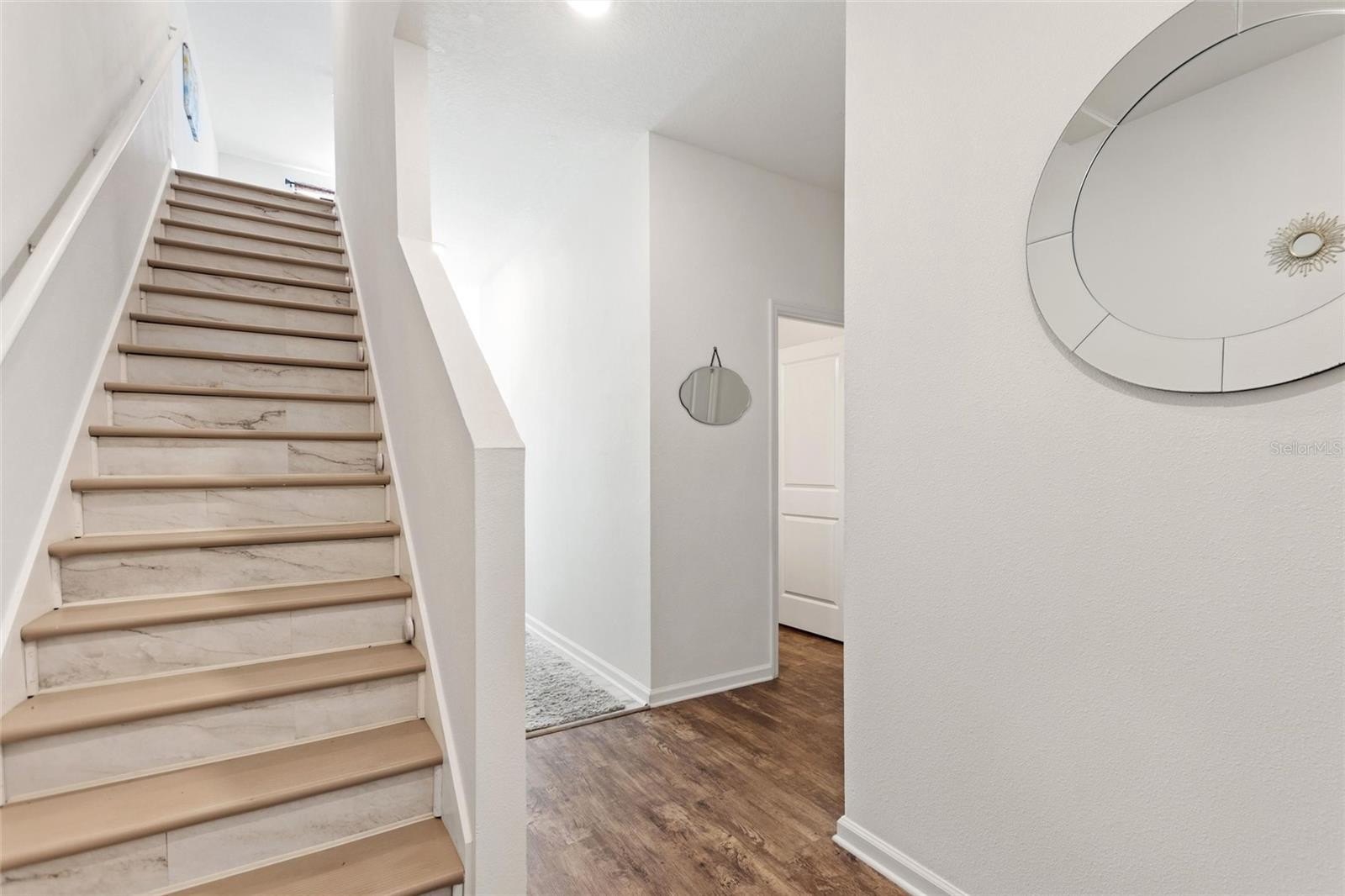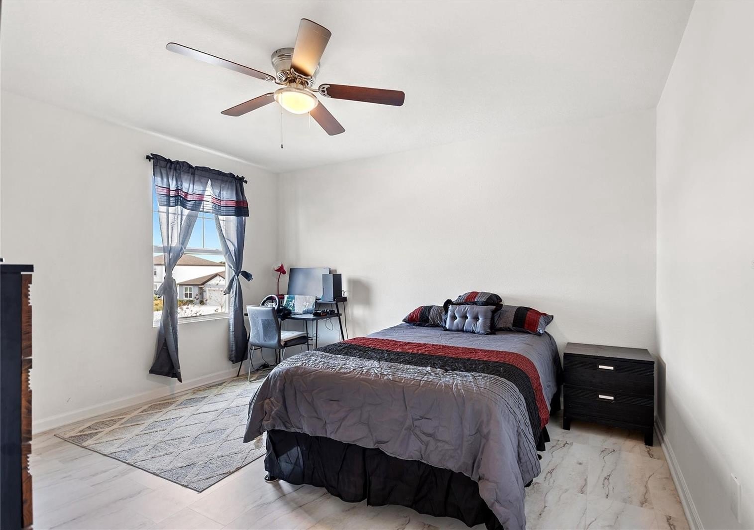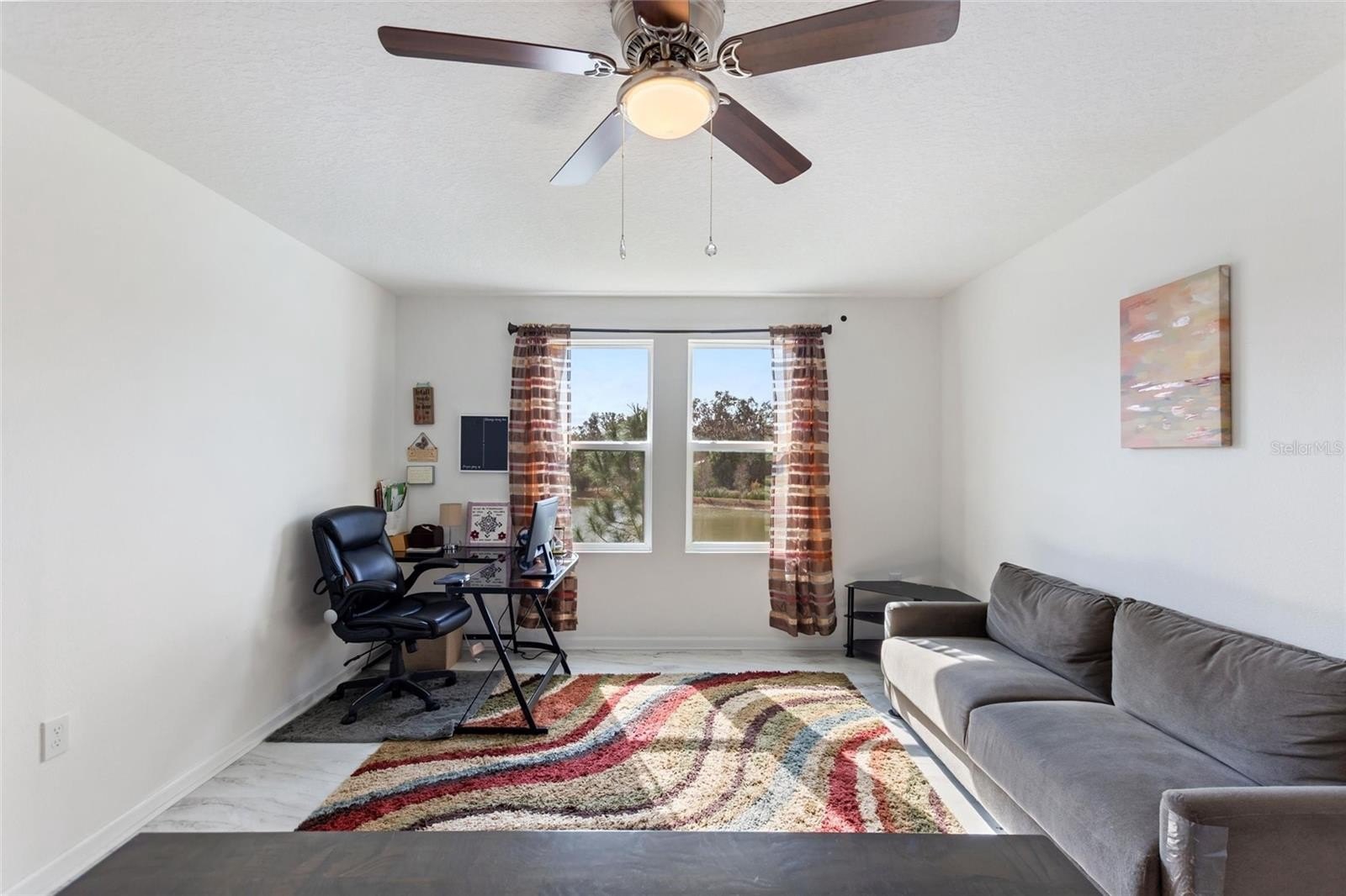 One or more photo(s) has been virtually staged. Fall in love with this spacious 4 bedroom, 3 full bath home featuring PAID OFF SOLAR and situated on a premium, fenced waterfront lot with no rear neighbors. Designed to maximize natural light, the home offers a bright, open feel throughout. The gourmet kitchen is appointed with granite countertops, while luxury vinyl plank flooring and recent bathroom updates add a clean, modern touch. The versatile floor plan includes one bedroom and a full bath on the first floor, ideal for guests or multi-generational living. Upstairs, a loft, den, or office with water views at the top of the stairs provides flexible space to suit your needs, along with conveniently located laundry. All upstairs bedrooms feature walk-in closets, and fans are installed in every room for year-round comfort. Additional highlights include a 2-car garage, water softener, washer and dryer, smart thermostat and a premium Carrier A/C system with UV light technology to enhance indoor air quality. Outdoors, enjoy a large private backyard, a paver sitting area on the side of the home, and a storage shed, all set against tranquil waterfront views. Located in the highly desirable RIVERSTONE community with low HOA fees, residents enjoy access to a clubhouse, two pools, scenic walking trails, lakes and ponds, playgrounds, and a dog park. Set in South Lakeland, the home is just minutes from I-4, Polk Parkway, Sun ’n Fun, Lakeside Village shopping, dining, entertainment, and medical facilities, and approximately one hour from Gulf beaches and Walt Disney World. Schedule your private showing today as homes in this sought after, newly built community are limited.