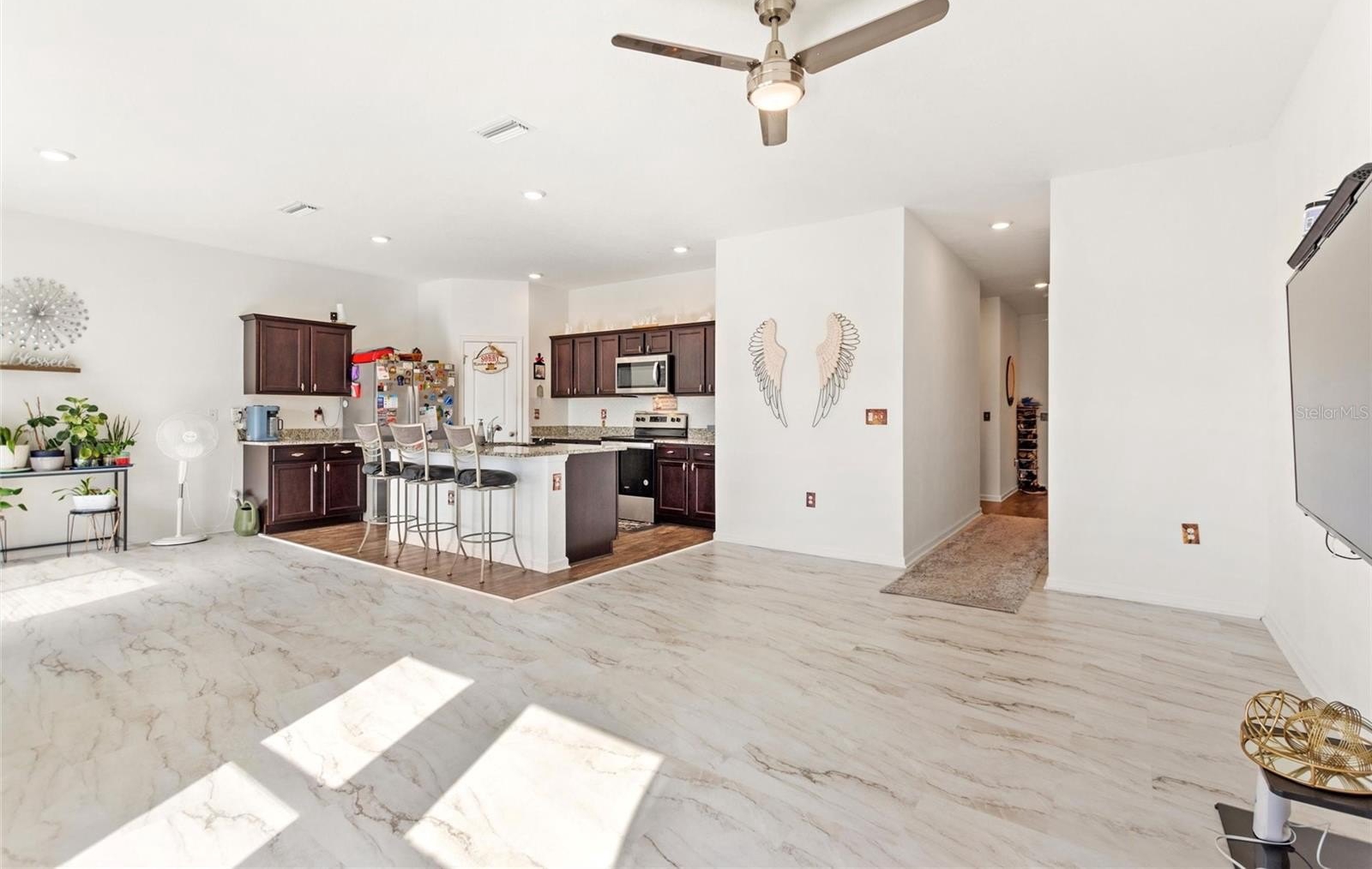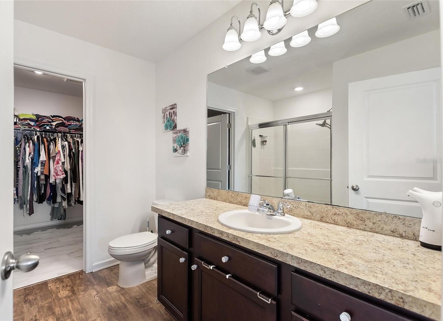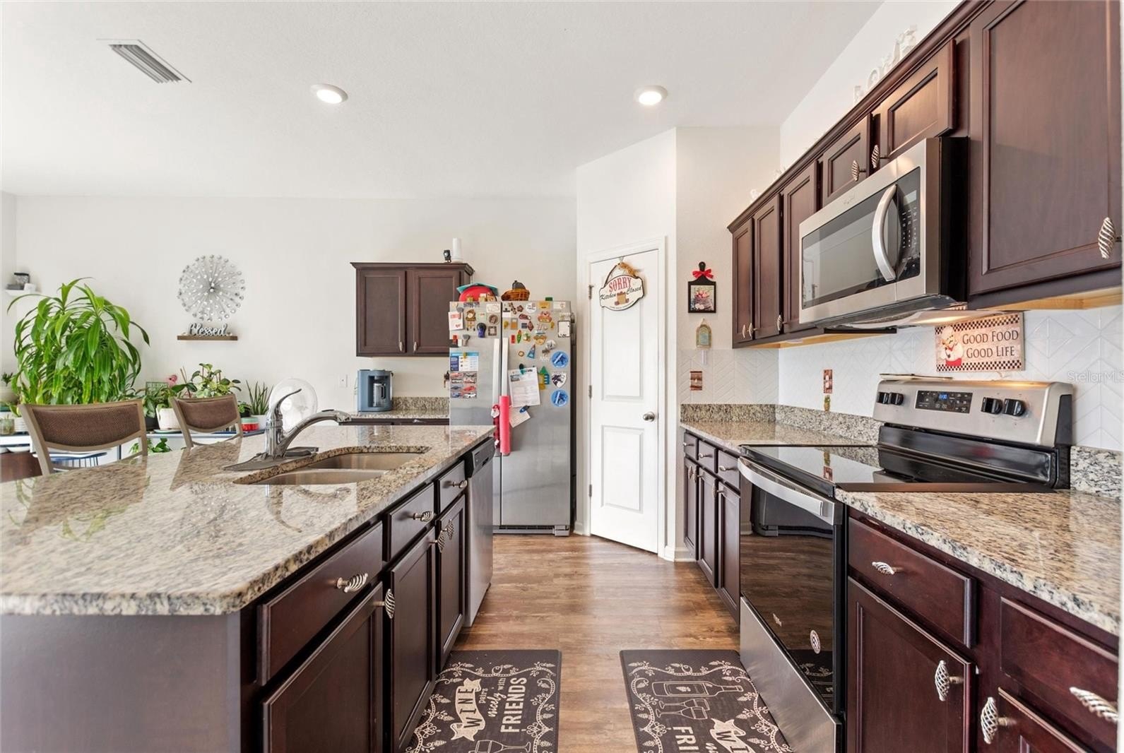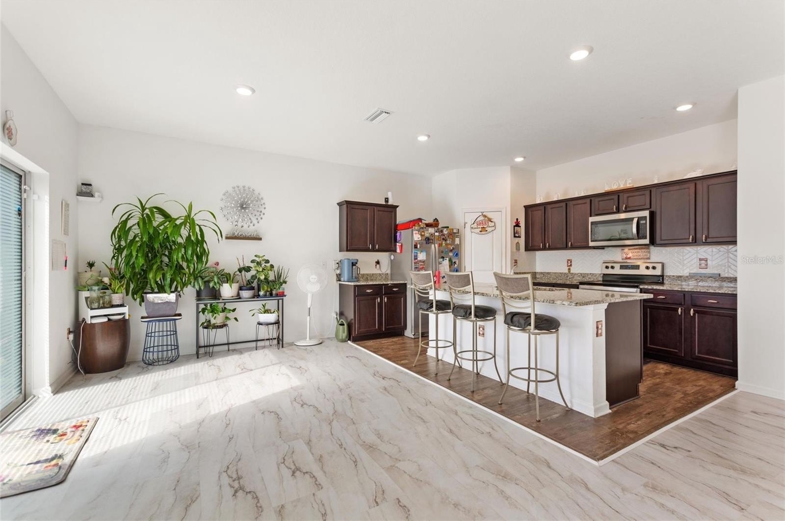 One or more photo(s) has been virtually staged. Fall in love with this spacious 4 bedroom, 3 full bath home featuring PAID OFF SOLAR and situated on a premium, fenced waterfront lot with no rear neighbors. Designed to maximize natural light, the home offers a bright, open feel throughout. The gourmet kitchen is appointed with granite countertops, while luxury vinyl plank flooring and recent bathroom updates add a clean, modern touch. The versatile floor plan includes one bedroom and a full bath on the first floor, ideal for guests or multi-generational living. Upstairs, a loft, den, or office with water views at the top of the stairs provides flexible space to suit your needs, along with conveniently located laundry. All upstairs bedrooms feature walk-in closets, and fans are installed in every room for year-round comfort. Additional highlights include a 2-car garage, water softener, washer and dryer, smart thermostat and a premium Carrier A/C system with UV light technology to enhance indoor air quality. Outdoors, enjoy a large private backyard, a paver sitting area on the side of the home, and a storage shed, all set against tranquil waterfront views. Located in the highly desirable RIVERSTONE community with low HOA fees, residents enjoy access to a clubhouse, two pools, scenic walking trails, lakes and ponds, playgrounds, and a dog park. Set in South Lakeland, the home is just minutes from I-4, Polk Parkway, Sun ’n Fun, Lakeside Village shopping, dining, entertainment, and medical facilities, and approximately one hour from Gulf beaches and Walt Disney World. Schedule your private showing today as homes in this sought after, newly built community are limited.