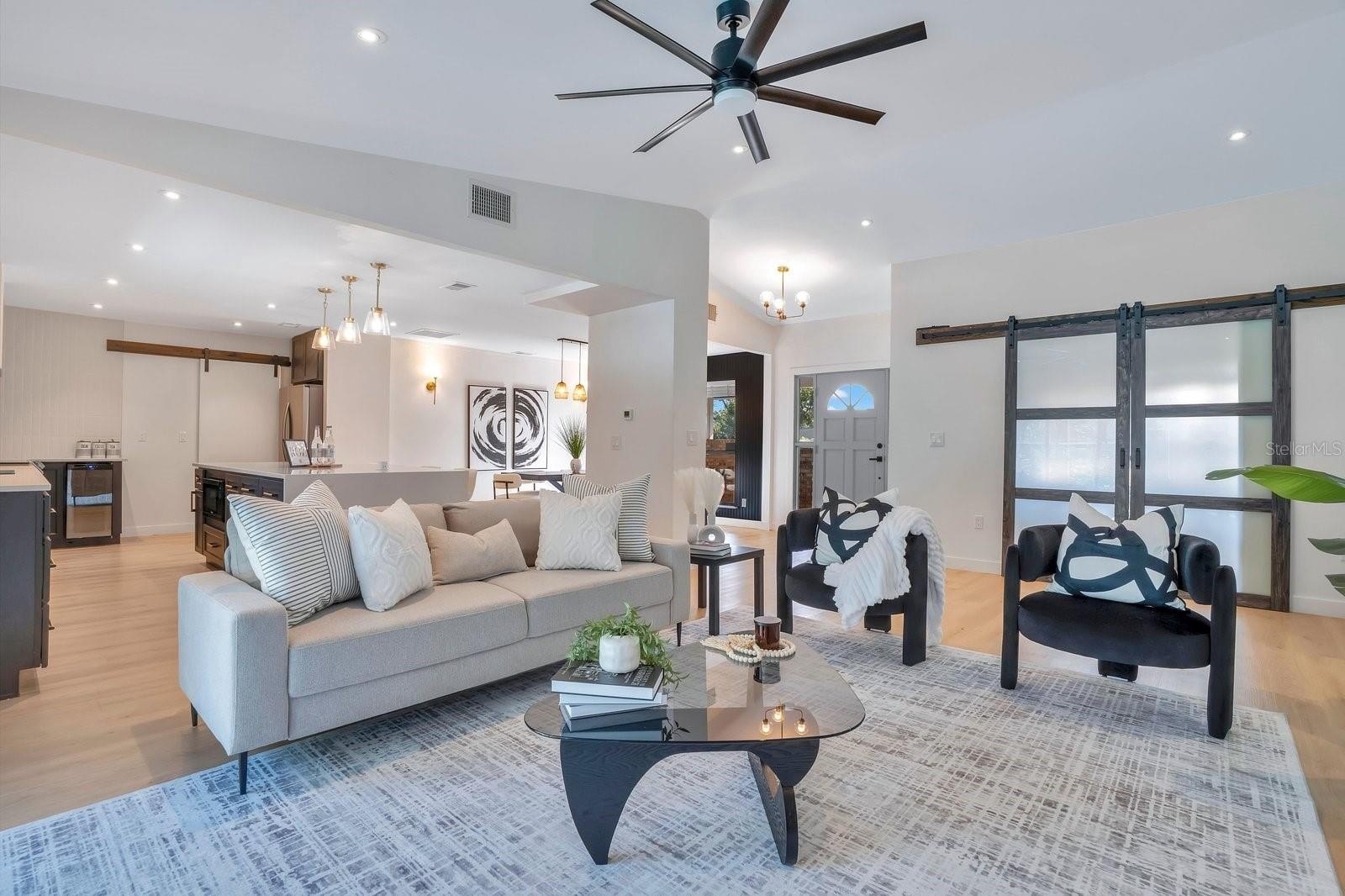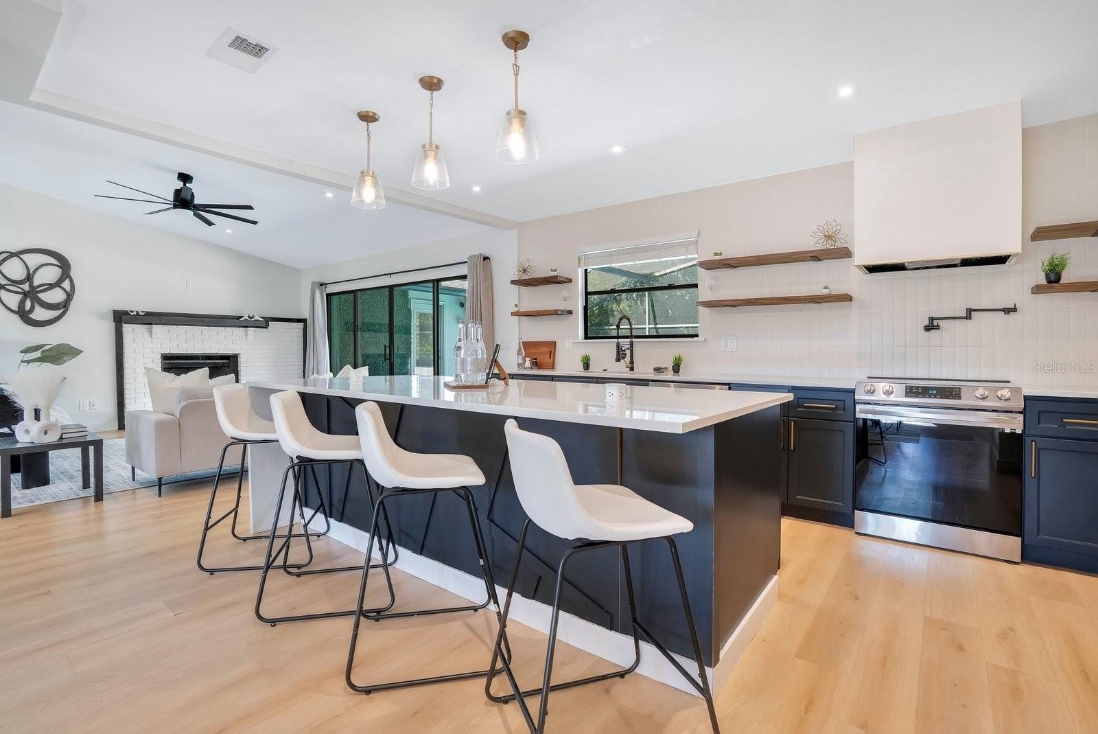 Here is an opportunity to truly make this exceptional 3-bedroom, 2-bath pool home your own in the heart of Windermere. Offering 1,784 sq ft of fully renovated living space, this residence features a refined open-concept layout with high-end vinyl flooring throughout, a statement kitchen with an oversized waterfall-edge island, and a private attached office framed by custom barn doors. Set on a spacious lot, the outdoor living experience feels like a private resort with a saltwater pool, fully enclosed screened area, and an outdoor hot shower, ideal for entertaining or everyday enjoyment. Thoughtful upgrades include a brand-new roof (2025), HVAC replacement, and updated plumbing completed during renovation. The property also offers space to accommodate a boat or small RV along the side of the home with access to the Butler Chain of Lakes, and is ideally located minutes from shopping, dining, everyday conveniences, and zoned for highly rated schools within a highly desirable community.