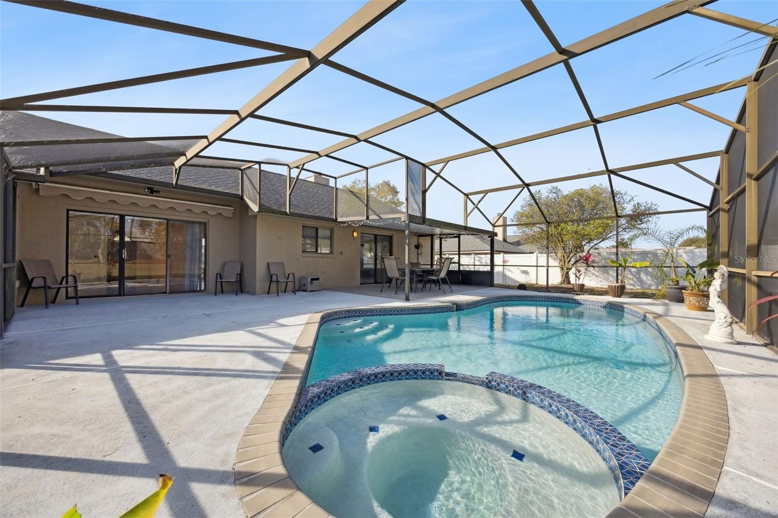 One or more photo(s) has been virtually staged. Discover Your Dream Florida Home with Pool & Spa in Silver Ridge, an established and quiet community adjacent to Ocoee, where pride of ownership is evident. This meticulously maintained 3-bedroom, 2-bath split floor plan, solid block home is filled with natural light and offers peace of mind with a newer roof, A/C, and appliances, along with a freshly painted interior and exterior as well as newly epoxied floors in the 2 car garage. Both the primary and secondary bathrooms have been tastefully updated. The heart of the home is a welcoming family room featuring a cozy wood burning fireplace and built-in surround sound. Enjoy the elegance of granite countertops in both the kitchen and bathrooms. The kitchen boasts an island with seating, perfect for casual dining. The primary bathroom includes a soaking tub and modern walk-in shower. The second bathroom also features an updated vanity and shower. Embrace the best of Florida living in your oversized, fully privacy-fenced backyard. The outdoor space is an entertainer's dream, featuring a screened-in patio with two covered seating areas, and a sparkling pool and spa. The pool has been recently resurfaced and includes updated equipment, ensuring low-maintenance enjoyment. This location offers incredible accessibility, situated just 15 minutes from Downtown Orlando, 20 minutes from major theme parks, and minutes from major highways, shopping centers, schools, and hospitals. Easily one of the best values in the area and very easy to show. Call today to schedule your private tour.