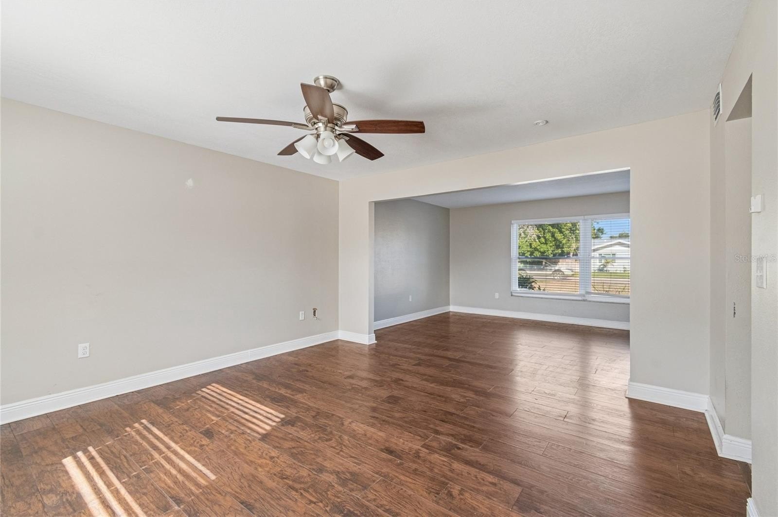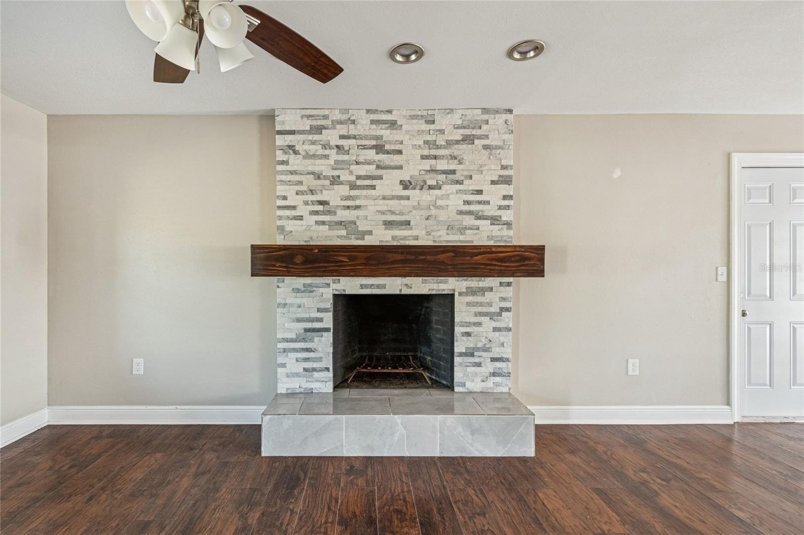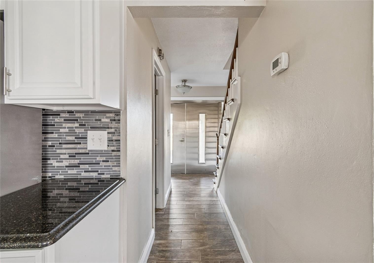 Inside, the home features updated flooring and fixtures throughout, with formal living and dining areas ideal for entertaining. The heart of the home is the expansive great room with a wood-burning fireplace, seamlessly connected to the kitchen and designed for everyday living and gathering. The kitchen offers white cabinetry, granite countertops, stainless steel appliances, and ample workspace.
